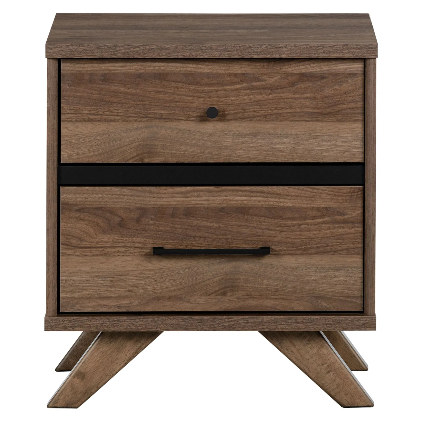 A night stand with character Here’s a piece they’re sure to notice! With angled wooden legs for an original touch and a decorative molding for contrast, this Modern style night stand will look quite elegant next to your bed. A versatile Scandinavian style Whatever decor you choose for your bedroom, this night stand from the Flam collection will add a touch of Scandinavian chic. Create a warm, laid back atmosphere – a place to sleep or just relax. This piece will blend easily with pastel colors and a minimalist interior. Keep it simple – that’s the key! Storage space This small night stand has two drawers on metal slides for storing whatever you keep by your bed: magazines, reading glasses, a box of tissues, your phone and mobile devices. The drawers, which feature elegant metal knobs and straight handles, open and close smoothly, to allow you easy access to your things. Each drawer can hold up to 25 pounds. Keep the space around your bed neat and tidy!