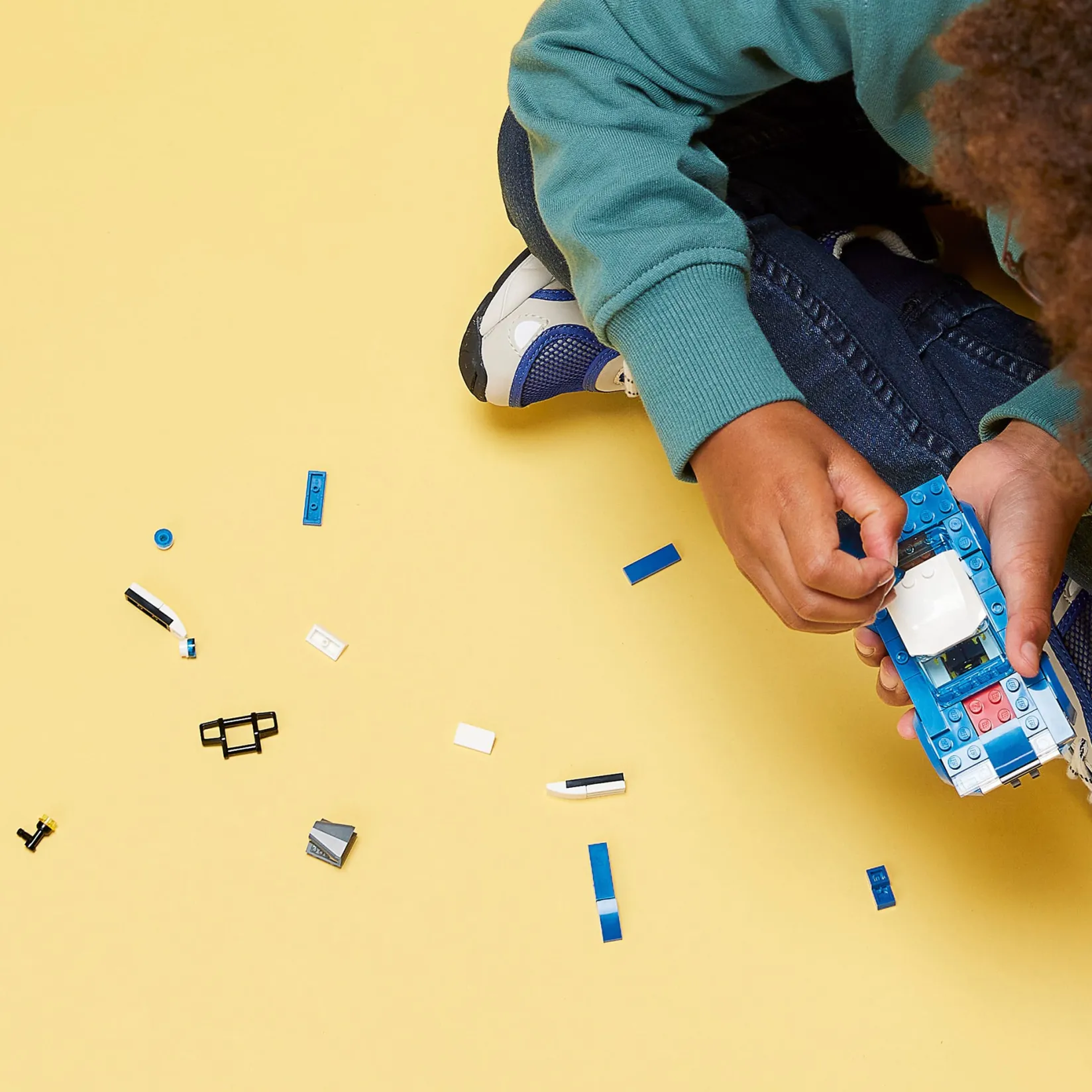 Send kids’ imaginations racing with this LEGO® City Police Car (60312) playset, featuring a sporty patrol car with cool rims, wide fenders and grippy tires. Add the police officer minifigure, complete with a flashlight and police cap, and you’re ready for hours of imaginative crook-chasing action!