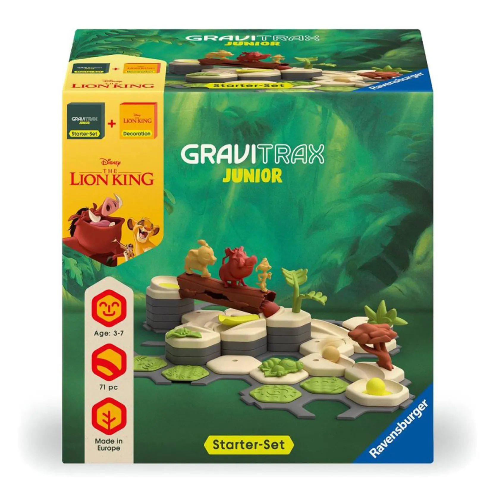 GraviTrax Junior is an interactive marble run system designed for children aged 3 and up. The GraviTrax Junior Disney Lion King Bundle allows boys and girls to create their own unique Lion King marble runs. Featuring play figures like Simba, Pumba, and Timon, along with decorative elements such as a large tree trunk, children can build their own Lion King universe. Imaginative play encourages pretend play and stimulates creativity.