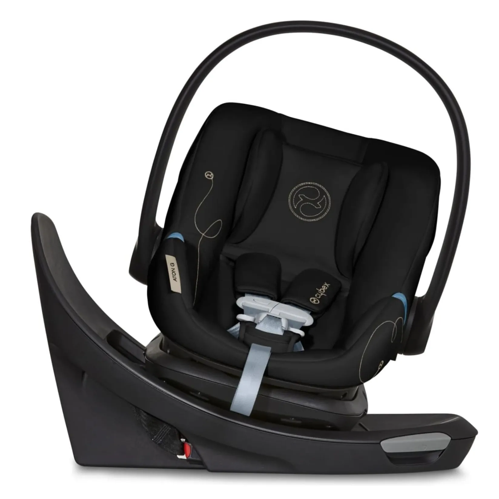 The CYBEX Aton G Swivel delivers 180 degrees of rotation while offering maximum convenience and safety without compromising on design. The 180-degree swivel base provides an ergonomic swivel that makes it easier than ever to load and unload the child from the carrier while the seat is installed in the vehicle, and advanced safety features like the anti-rebound bar and Linear Side-impact Protection reduce collision forces in the event of a crash. Further optimizing safety and comfort, the lightweight Aton G Swivel also includes an adjustable headrest and no-rethread harness, in-shell air ventilation for natural airflow, and the SAFELOCKâ„¢ belt tensioner for quick and easy installation.