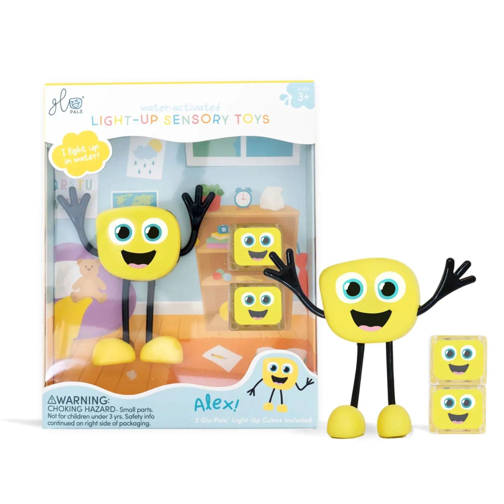 Insert your Glo Pals Light-Up Cube into the back of each Pal, drop it in the water, and watch it light up! Featuring bendable arms and colorful personalities, each Pal proudly illustrates the uniqueness in every child. Character comes with 2 Glo Pals Light-Up Cubes included in the box!