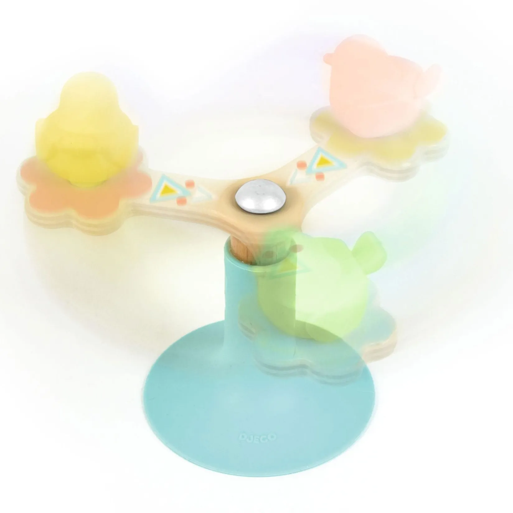 BabySpini is a spinning developmental toy with suction cup made of natural wood in pastel colours for ages 12 months and up. Your child can start it spinning with their hand and have fun turning the 3 birds quickly and keeping them going for ages. It’s fascinating to watch!