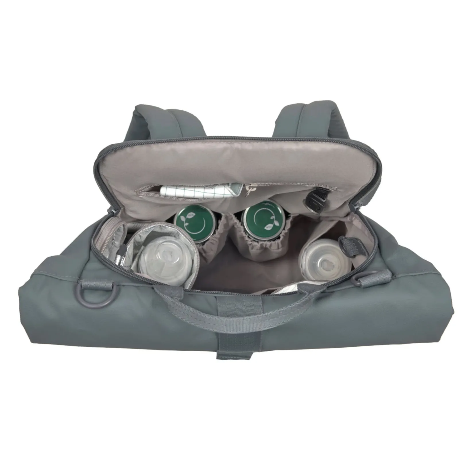 Equipped with a water-repellent changing mat, an insulated bottle holder, a potty holder, a stroller attachment system and a small pocket, the bag allows you to carry everything you need of travel.