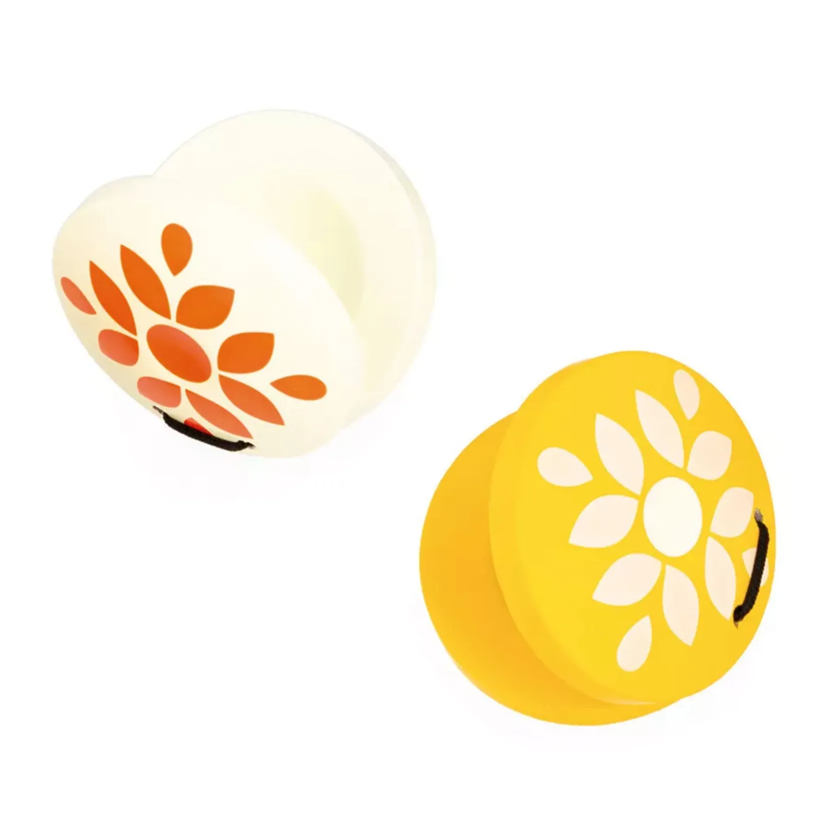 Share the love of music! With this set of 4 musical toys, younger and older children alike can be introduced to the joys of musical art from age 18 months and up. A sound toy is a great way to stimulate baby’s hearing whilst introducing them to different sounds. Children aged 3 years and up will have fun imitating the grown-ups and enjoying their fifteen minutes of fame with their very own pretend play musical toy! This set of toy musical instruments includes: 1x 8-tone wood and metal xylophone with 2 mallets, 1 nicely illustrated tambourine, 1 colourful wooden flute and 2 lively castanets. I.e. 4 toys dedicated to a shared musical awakening! This set of children’s musical instruments is ideal for offering a variety of sounds to baby or setting up a group concert. Each product produces a different sound and is manipulates in a specific way, making this set of toy instruments a perfect birthday gift for the most curious or aspiring musicians! Ideal for developing children’s imagination, as they headline a fully-booked concert or give a music theory lesson to their stuffed animals. Which musical toy will become their favourite? And yours? This set of 4 pretend play toy musical instruments is part of our Gioia range; a joyful musical awakening is in store for little ones as they discover many a sound in a fun, sharing-focused way. Made from FSCâ„¢ -certified wood.