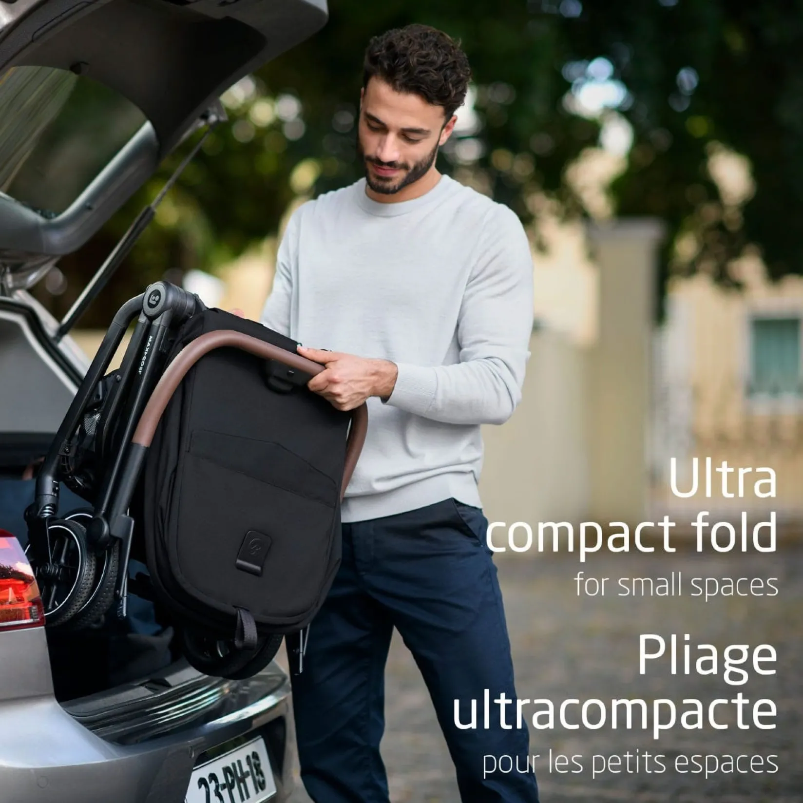 -One-hand folding system – folds with seat in forward and reverse facing