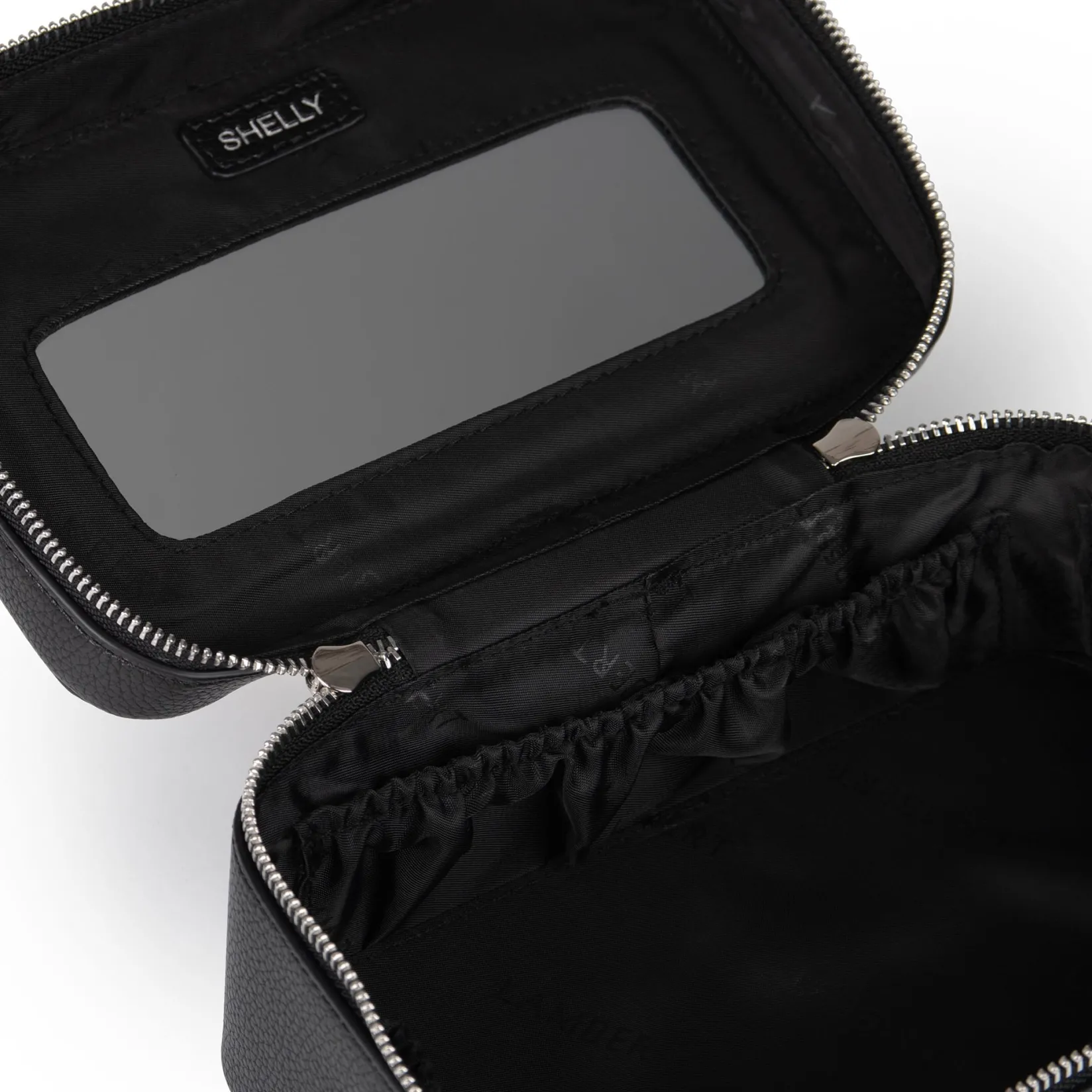The Shelly is the perfect companion for organizing your beauty and skincare essentials. Designed for everyday use as well as for getaways, it offers multiple interior pockets for optimal storage. A small detail that makes all the difference: a discreet mirror integrated under the lid, perfect for quick touch-ups on the go. Its textured vegan leather material adds an elegant touch to this essential designed to keep up with your pace.