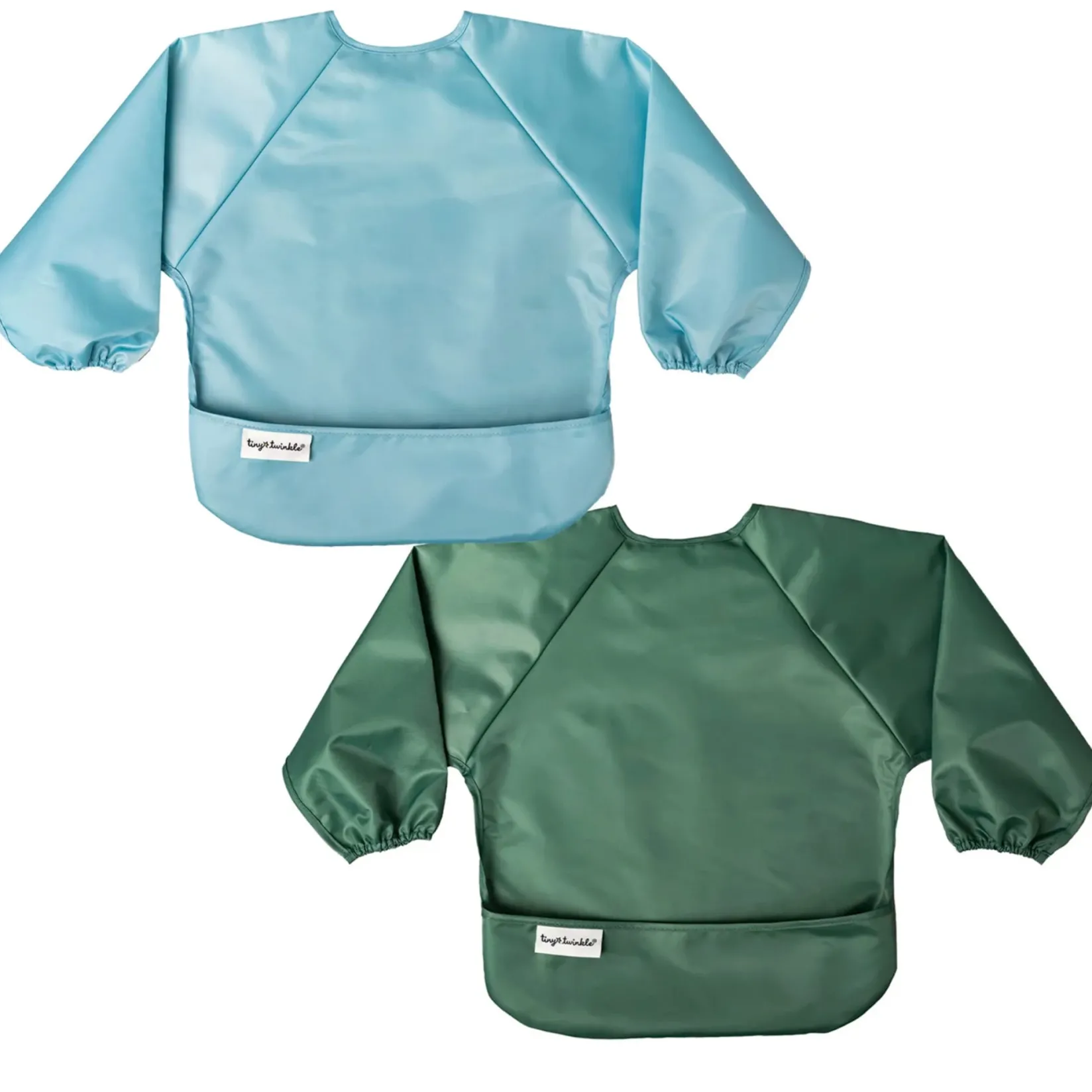 Tiny Twinkle Mess-proof Full Sleeve Bibs are soft, lightweight and water-repellent. These bibs are the best way to protect from messes and keep baby comfortable during mealtime! For use with ages 6-24 months.