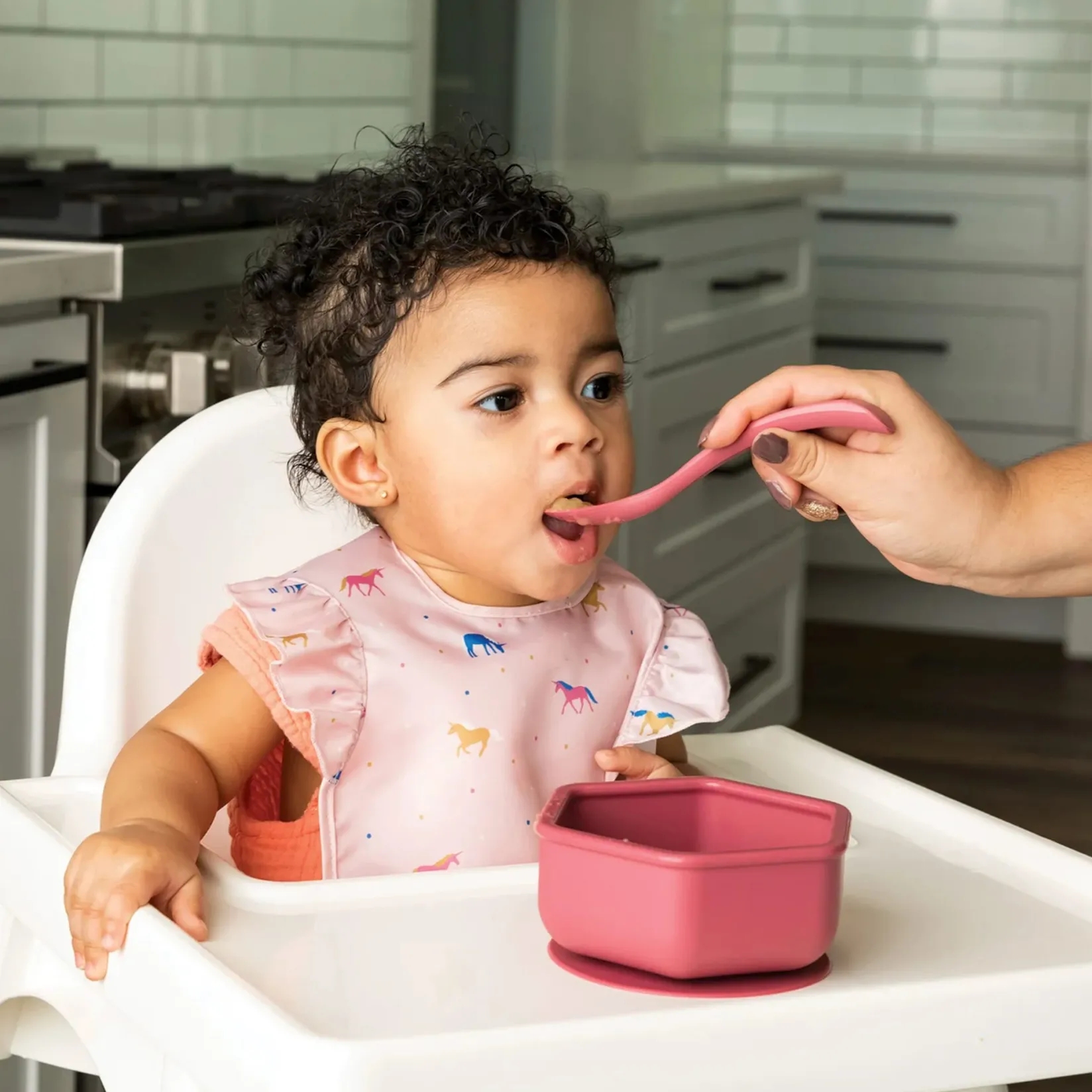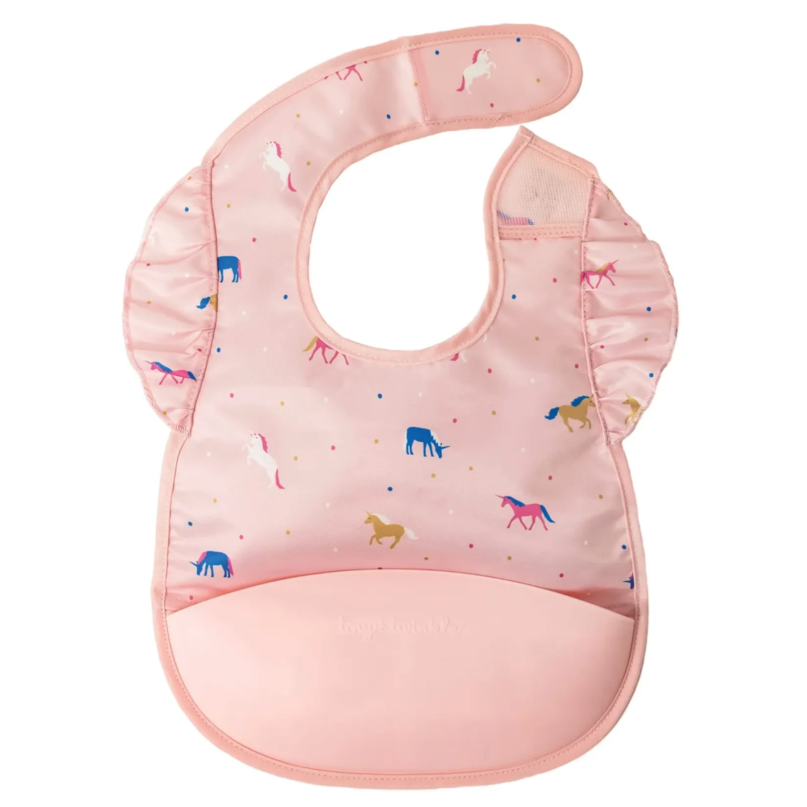Tiny Twinkles Silicone Pocket Bibs feature a unique catch-all pocket made from 100% food grade silicone! These bibs are the best way to protect from messes and keep baby comfortable during mealtime! For ages 6 months and up.