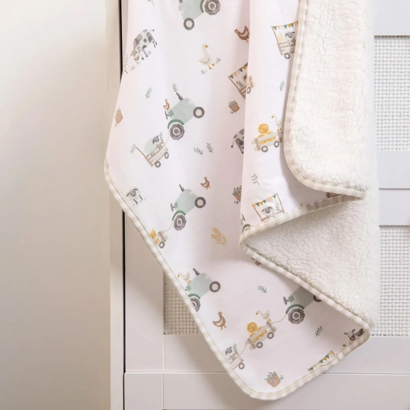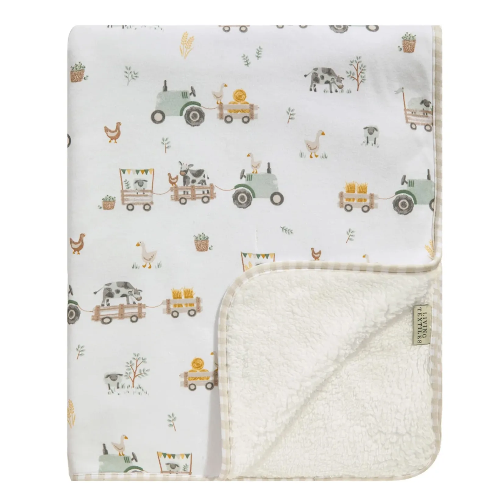 Blankets|Blankets>Living Textiles Jersey Sherpa Blanket – Tractor Ride