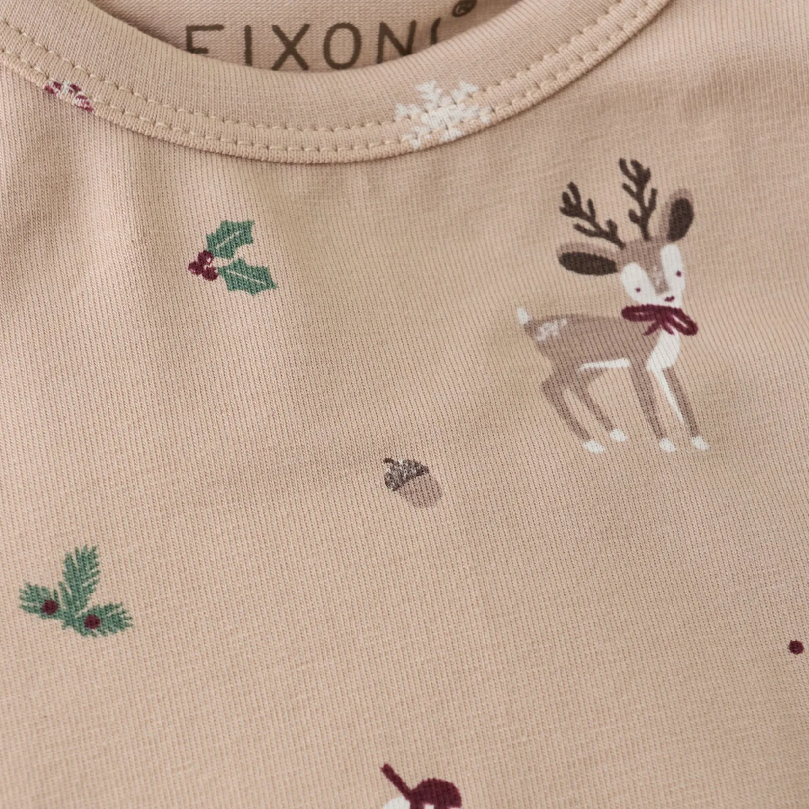 Body with christmas-all-over-print from FIXONI. This body has a nice christmas-all-over-print and can be opened on the shoulder an between the legs. Certified acc. to GOTS – organic CERES-0366