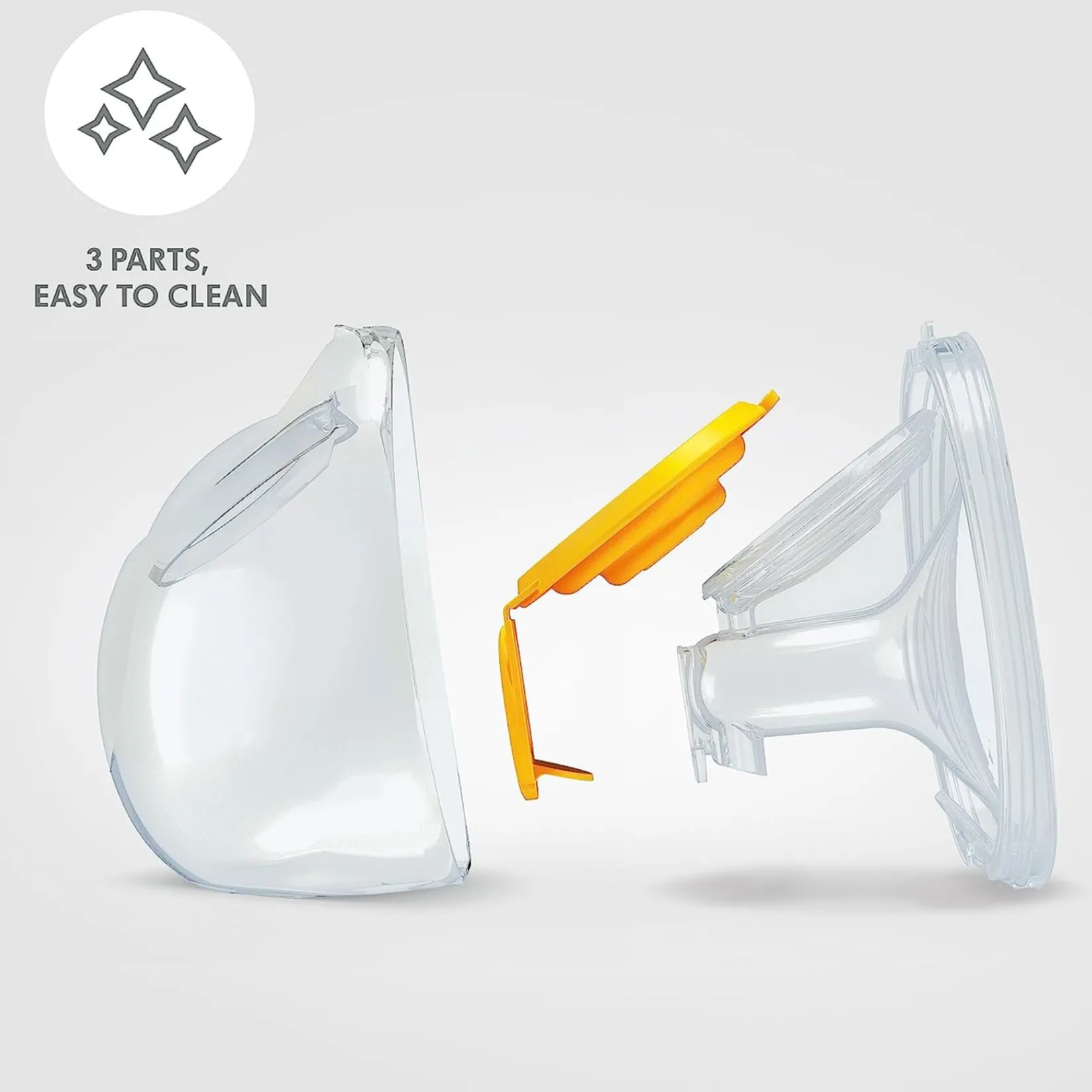 -Anatomical design to fit most breast shapes, angled breast shield to provide the greatest comfort on the breast.