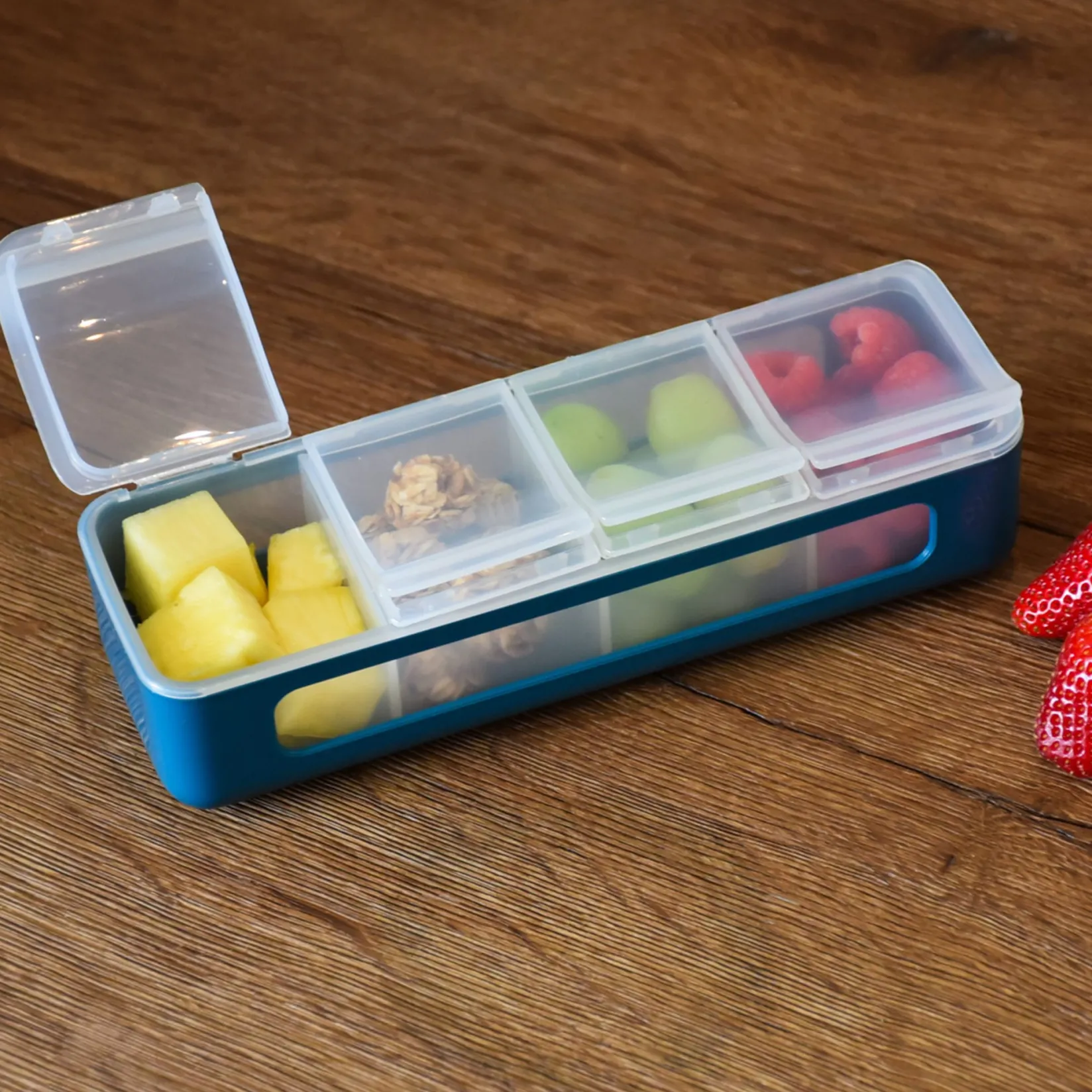 Ajoutez une touche d’excitation à l’heure des collations avec la boîte à collations 4 compartiments — le contenant ultime pour les collations à emporter !