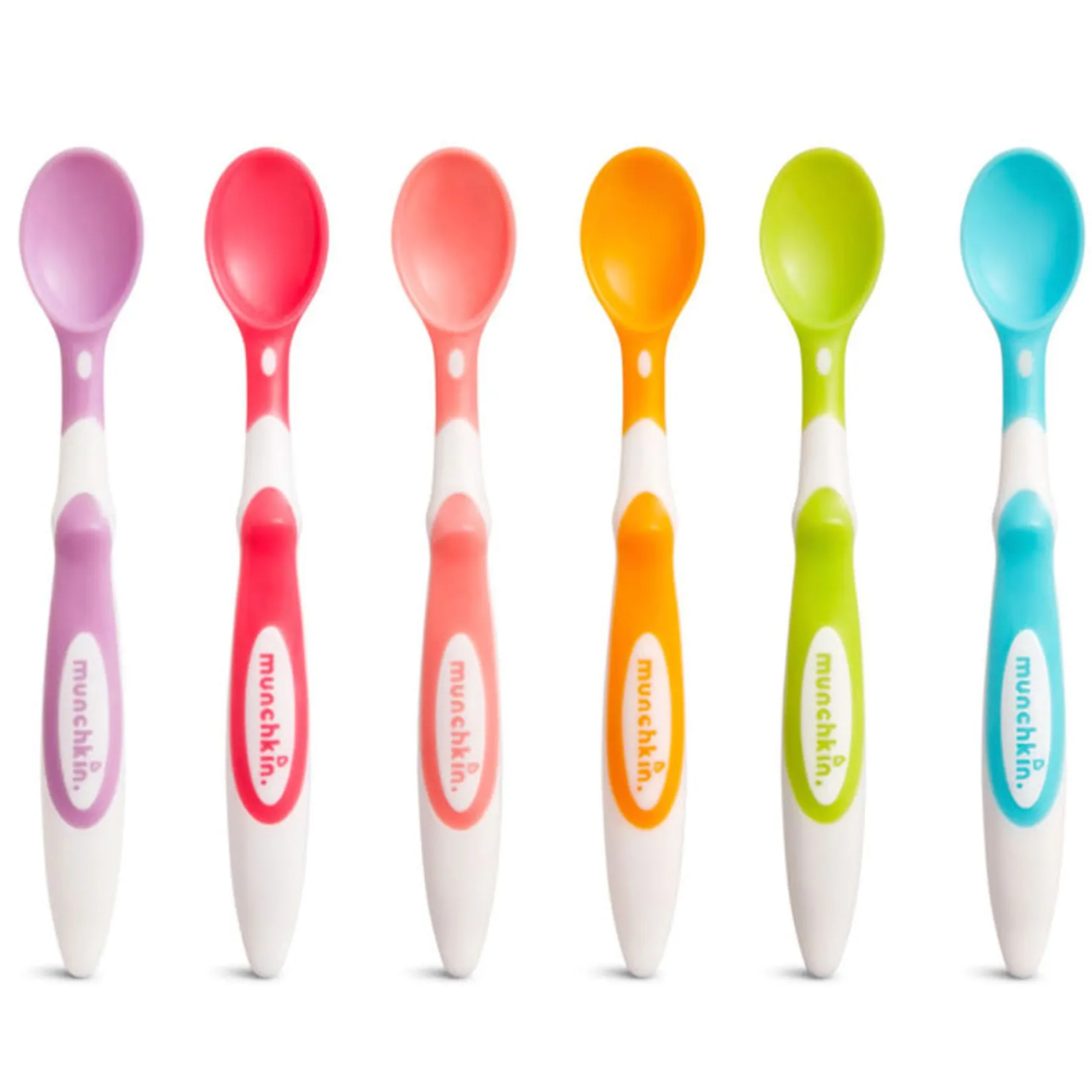 Designed for little mouths and happy meals. Mealtimes go a little faster when you feed your baby with the right utensils. Our soft-tip infant spoons have a rounded shape thats gentle on your baby’s gums. The special handle is ergonomically designed for a comfortable hold, and just the right length to reach the bottom of food jars. Theyre practical, functional and colorful. What else can you ask from a spoon? Pack of 6 spoons. Ideal for 3+ months.