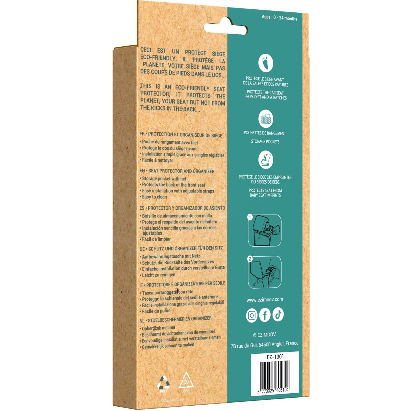 EZI TRAVEL CLASSIC is a car seat organizer. Allow your child to have everything they need accessible, games, books, water bottles…Easily organize and store what you want and enjoy peace of mind on the go.