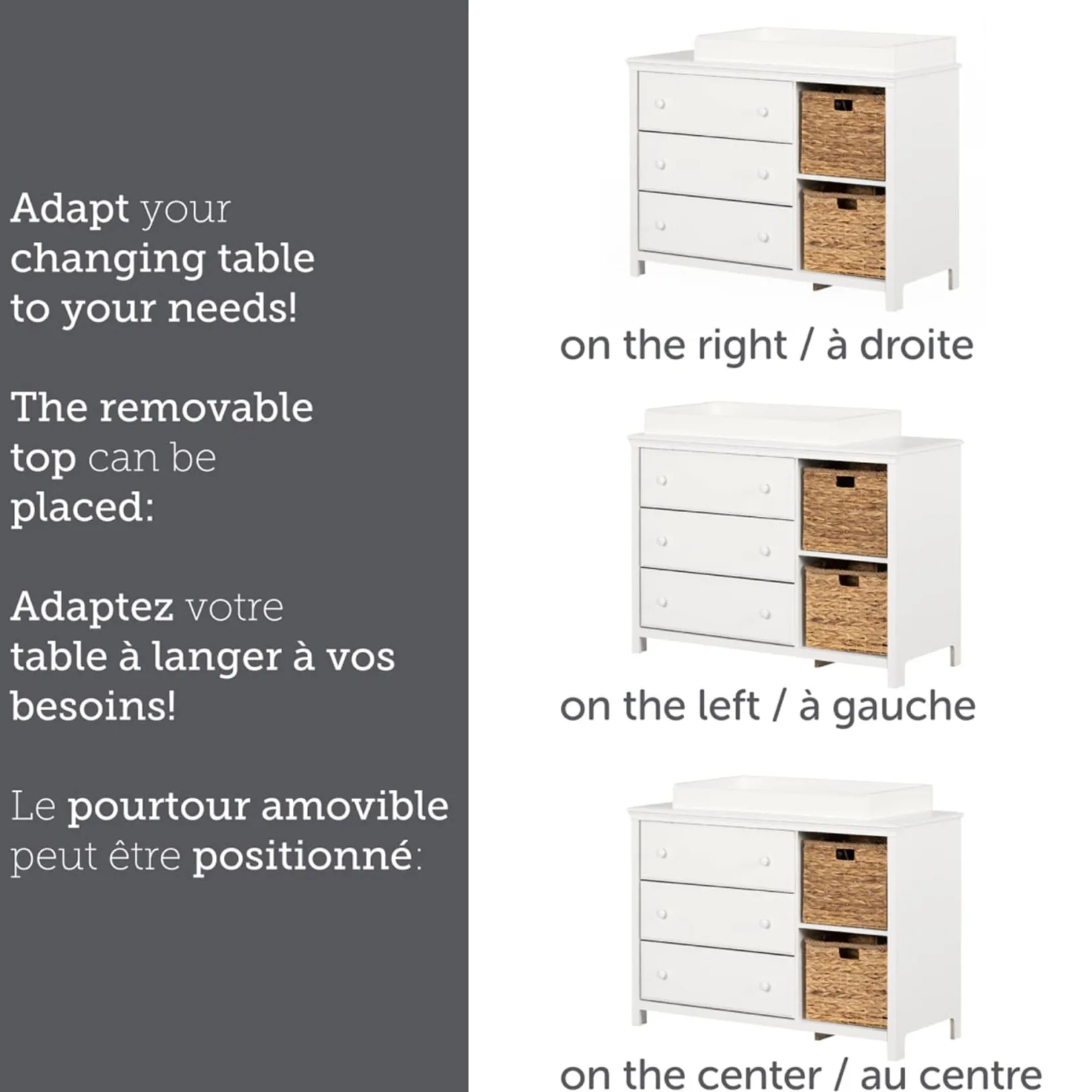 -Timeless Style: This changing table in the Contemporary style is so trendy, it can remain in your family for years to come. We’re especially fond of its two tone look with the wicker baskets, which will add a more natural touch to your decor.