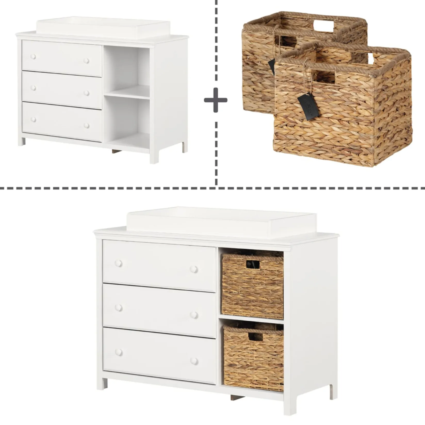 -Includes 2 Baskets: This piece comes with 2 custom fit wicker baskets, to help you get to the diapers, toys, creams, and all those other essentials more easily.