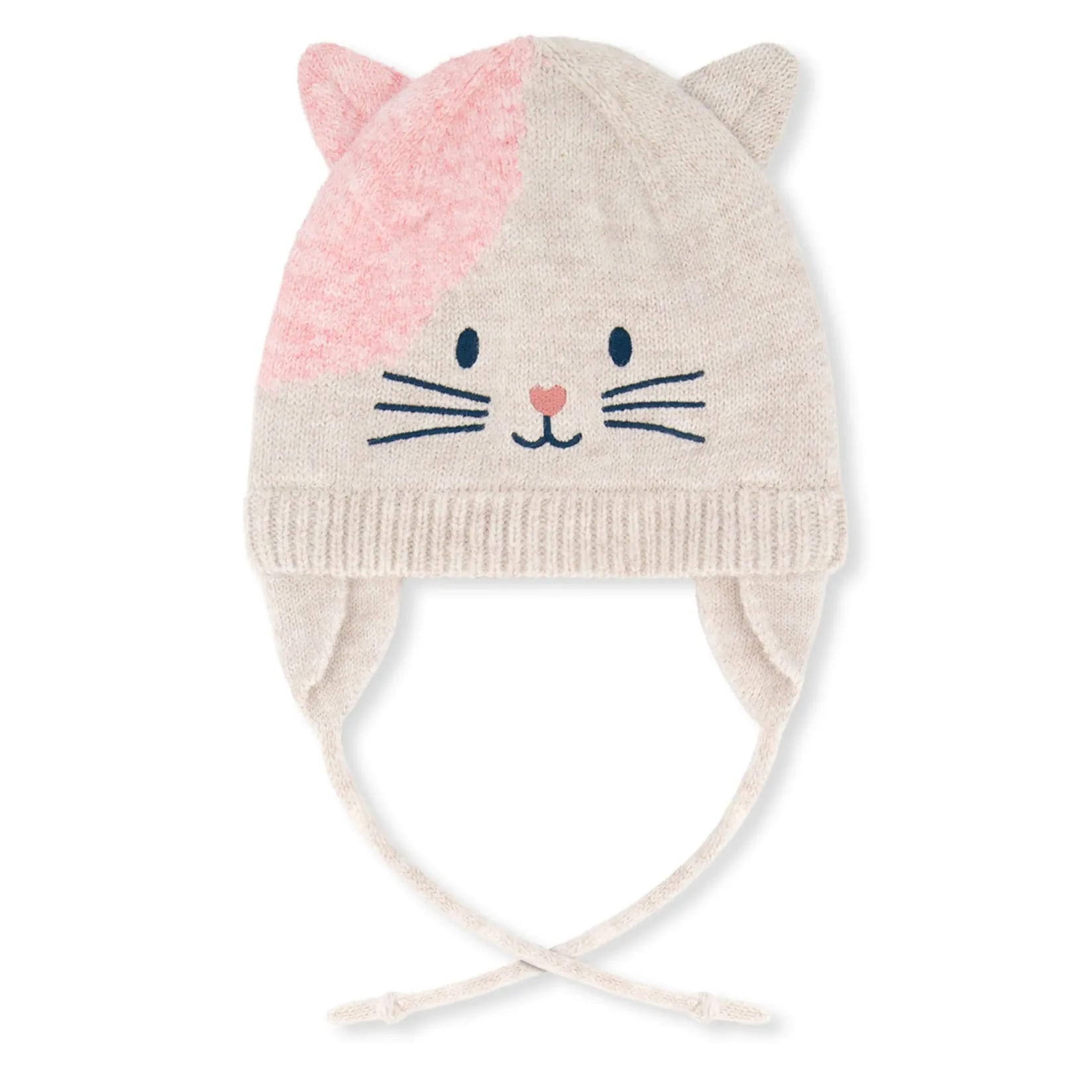 Lined with polar fleece for extra warmth on frigid days, this beanie hat features a two-tone design with a cat face on the front and three-dimensional ears on top. Ear flaps on each side provide added coverage and protection.