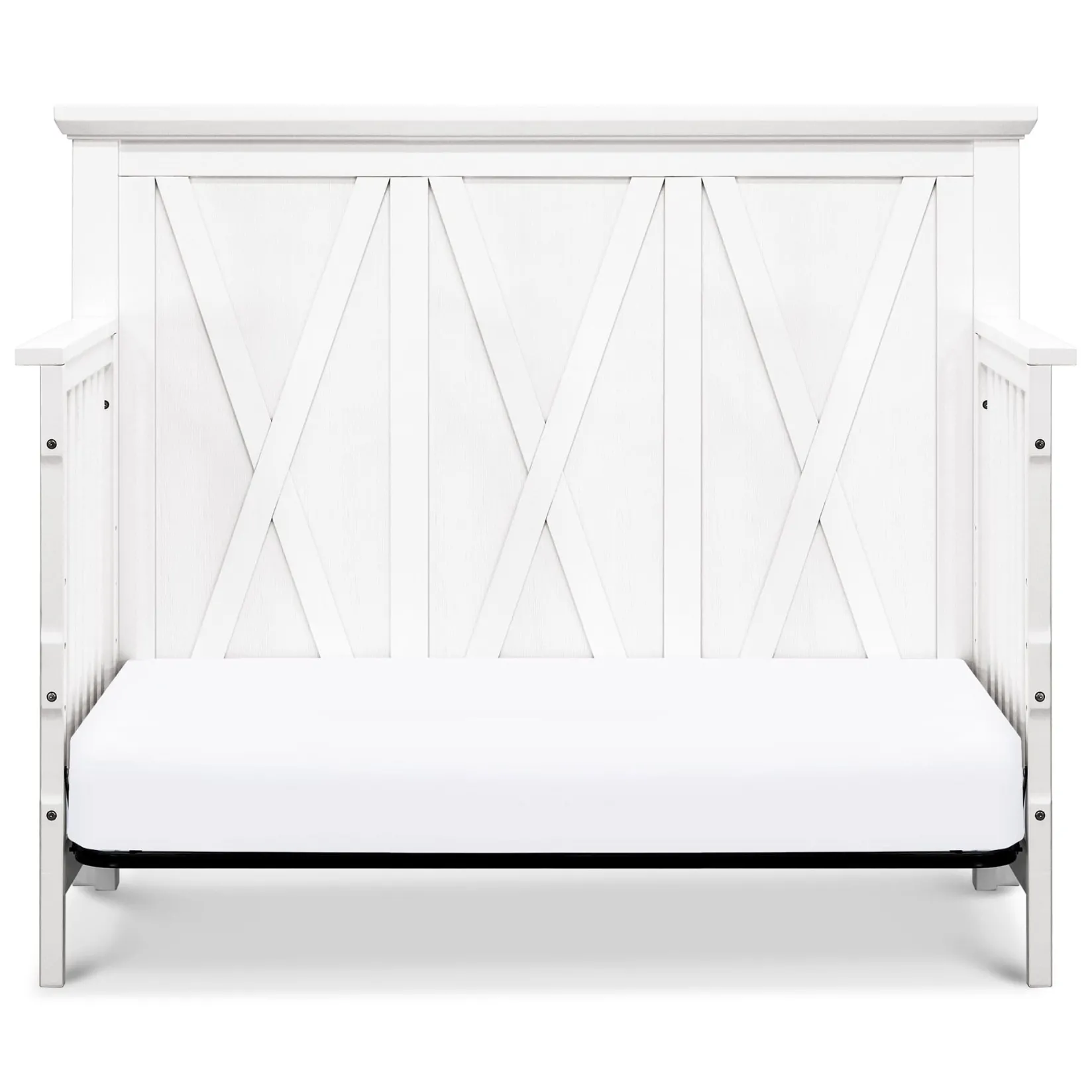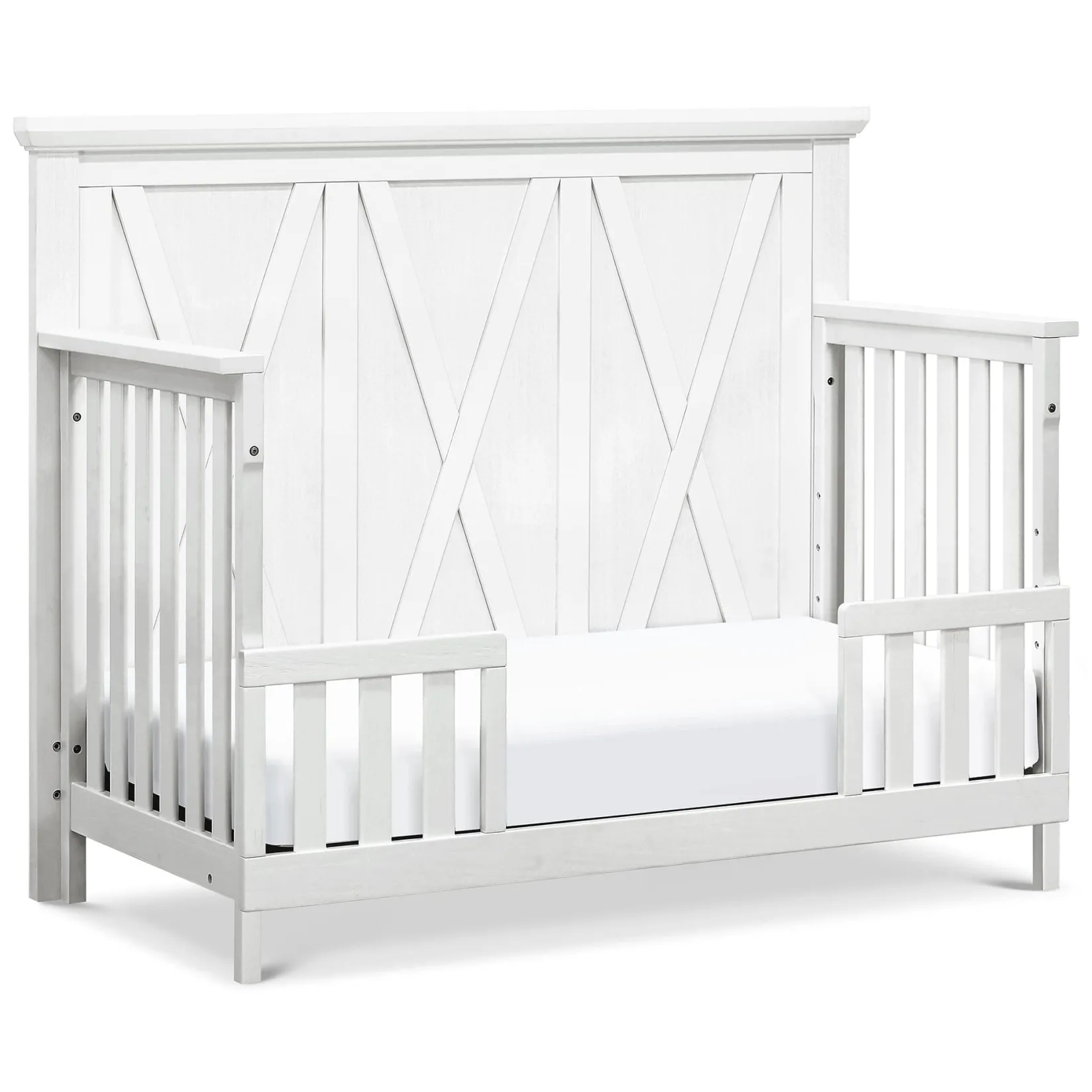 Made from solid Poplar hardwood and finished in beautifully textured finishes, the Emory Farmhouse 4-in-1 Convertible Crib adds a refined rustic feel to any nursery. The timeless Emory Farmhouse Crib grows with your child by converting a toddler bed, daybed, and full-size bed.