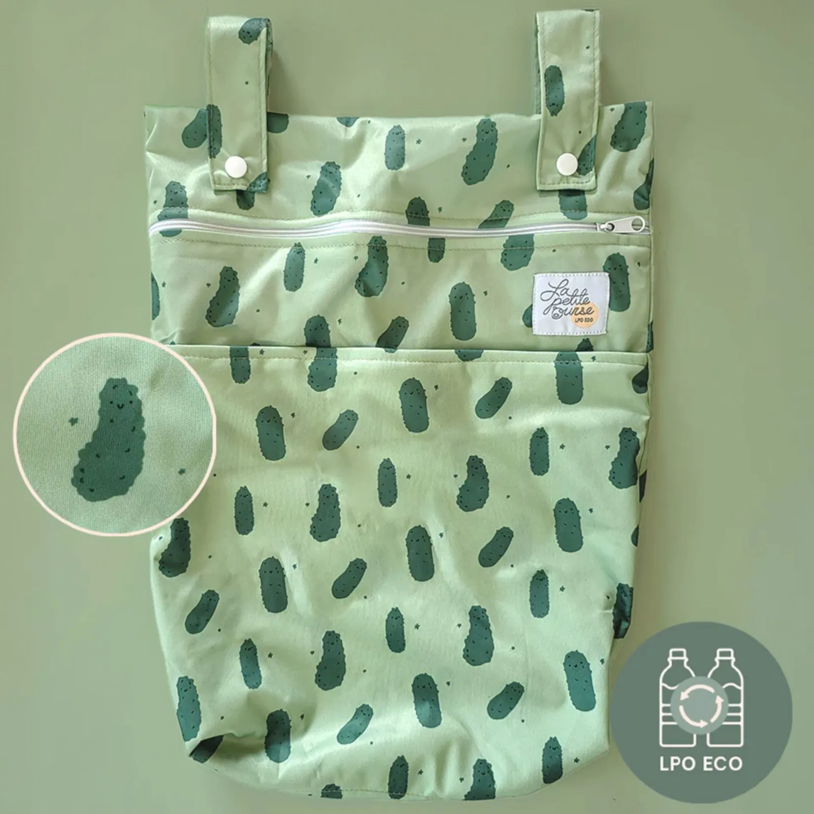 This bag has two openings that allow you to store 10 diapers. It’s very useful for outings: you can store your wet swimsuits, take your diapers to daycare, and dispose of your soiled diapers. A must-have to add to your cloth diaper order!