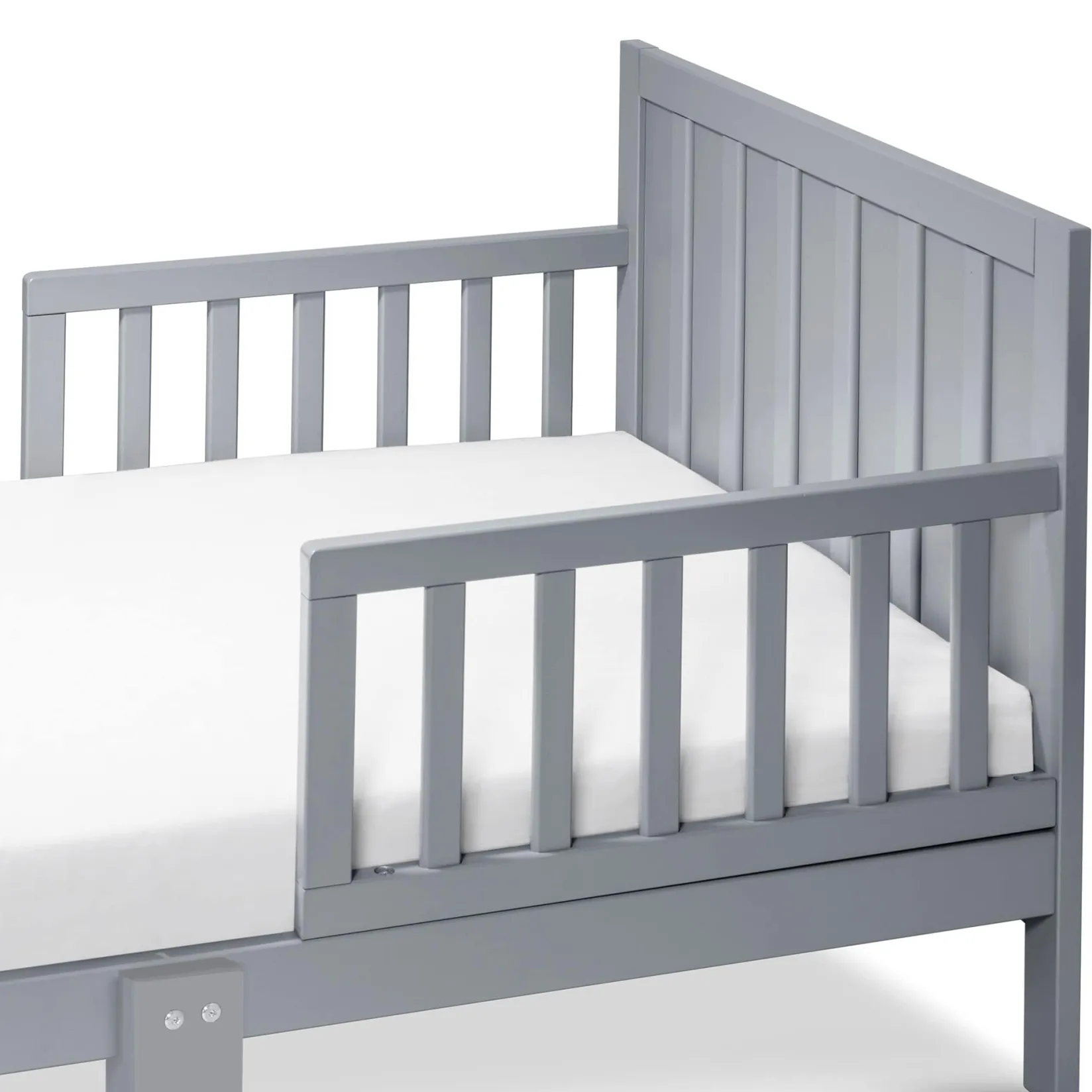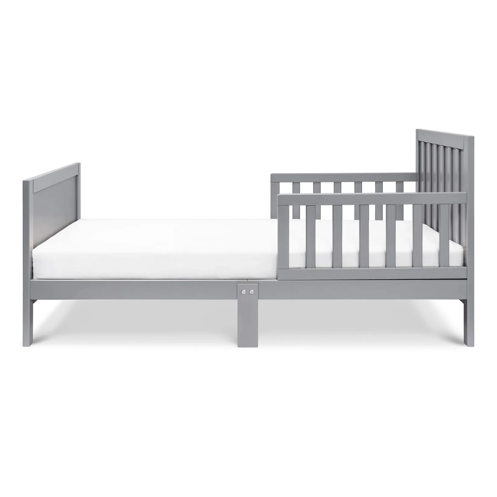 Give your “big kids” room a classic American look with the Carter’s Benji Toddler Bed. With its solid plank paneling and modern frame design, the Benji blends into any child’s room and makes the transition from crib to bed easy. Fits any standard sized crib mattress and is equipped with two sturdy side rails to help keep children safe in place.