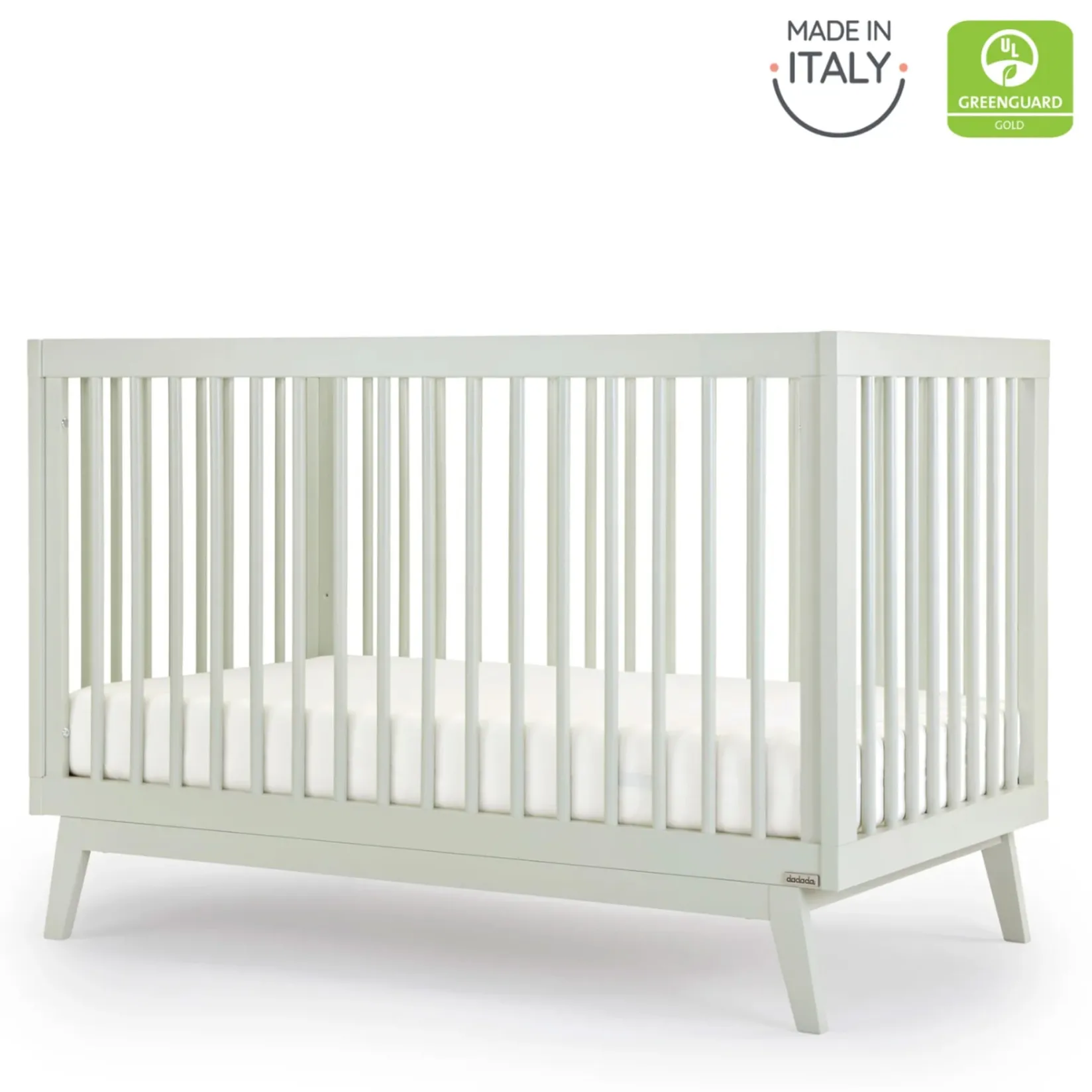 Made in Italy and GREENGUARD Gold certified, the Soho 3-in-1 Convertible Crib updates a classic open Scandinavian design with mid-century modern lines to complement any room style. Sturdy inclined legs tuck beneath a strong frame and all four walls allow easy air circulation. With three mattress positions available, you can easily adjust the bed heights to match your baby’s growth from newborn to toddler (toddler bed/day bed conversion kit sold separately).