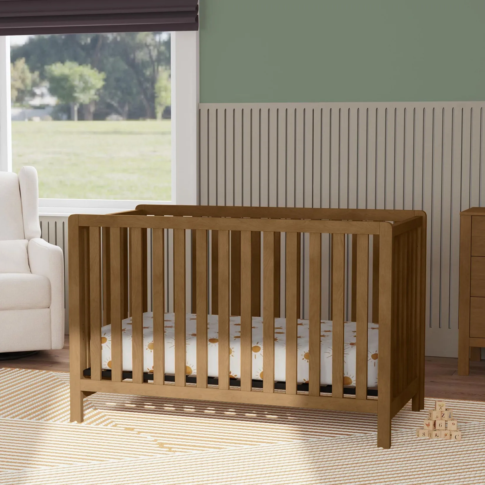 The Colby 4-in-1 Convertible Crib combines clean lines, outstanding quality and multi-functional design. Converts to a toddler bed, day bed, and full-size bed for use long past the nursery years.