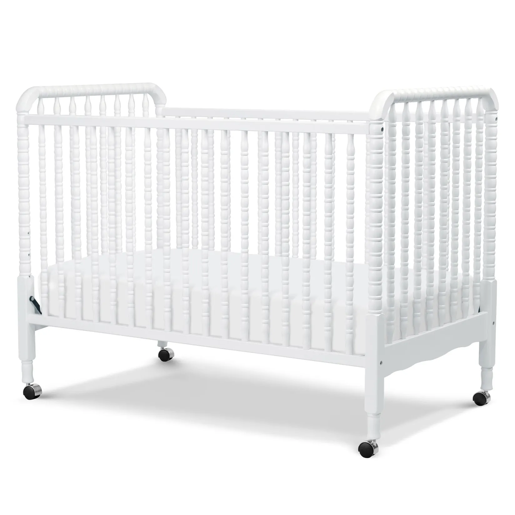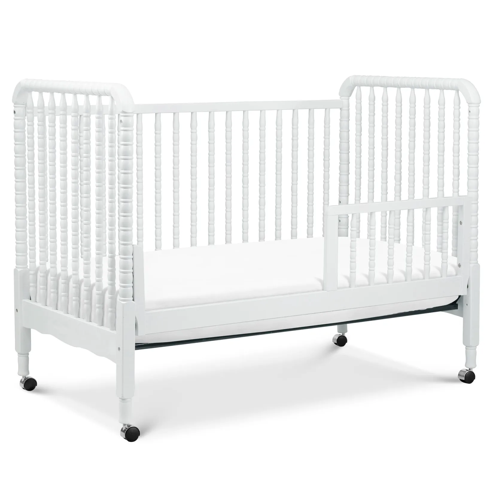 DaVinci’s beloved Jenny Lind 3-in-1 Convertible Crib brings classic, vintage-inspired charm to the nursery. Signature heirloom style and solid wood spindle posts are paired with easy assembly and convertibility for use beyond the nursery years. Crib converts to toddler bed and daybed, with wheels included for mobility.Â