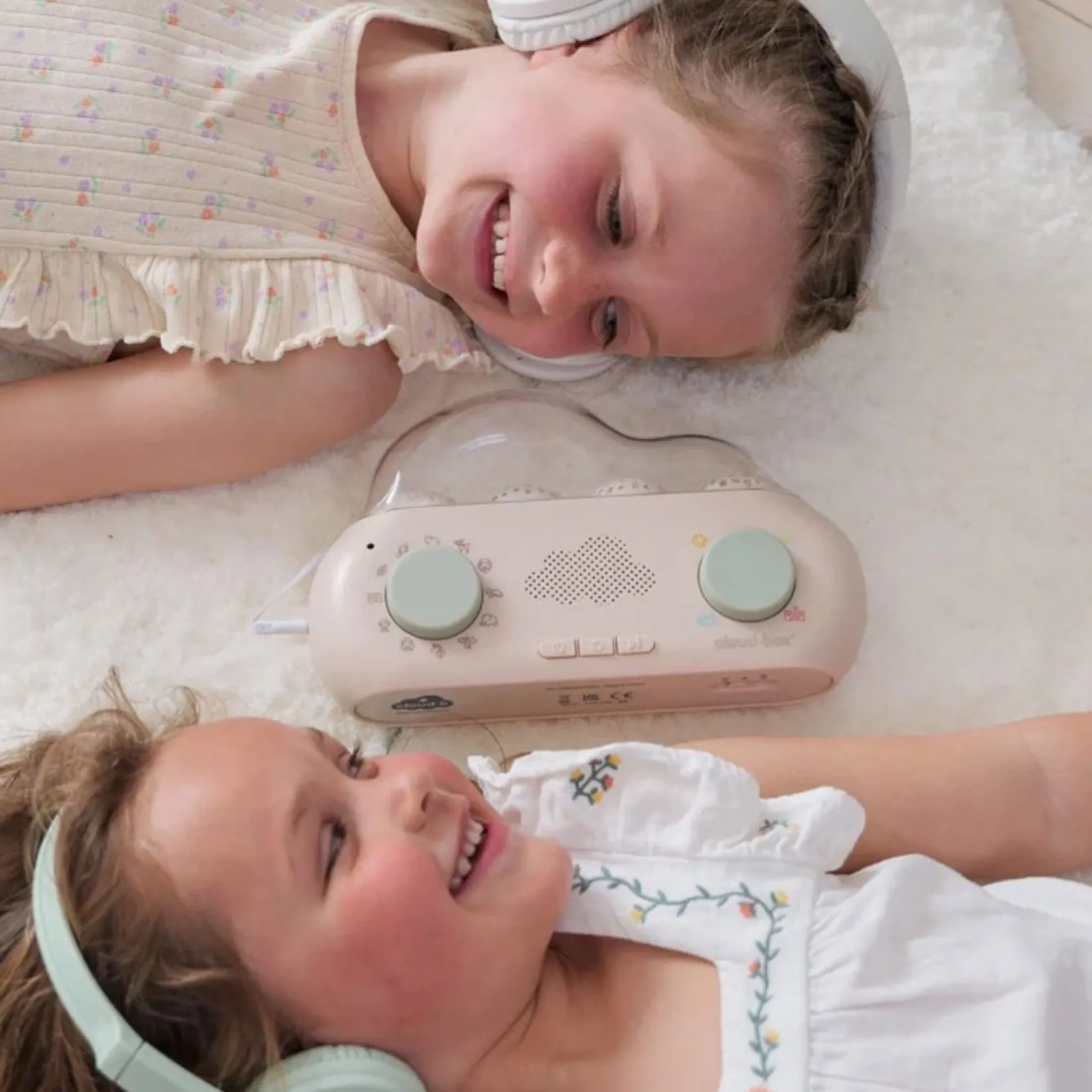 Interactive without needing a screen, cloud.box™ nurtures a genuine love of storytelling for children while reducing “screen time.” Connect headphones to the plug on the left side of the cloud.box™ for a totally immersive audio experience (headphones not included).
