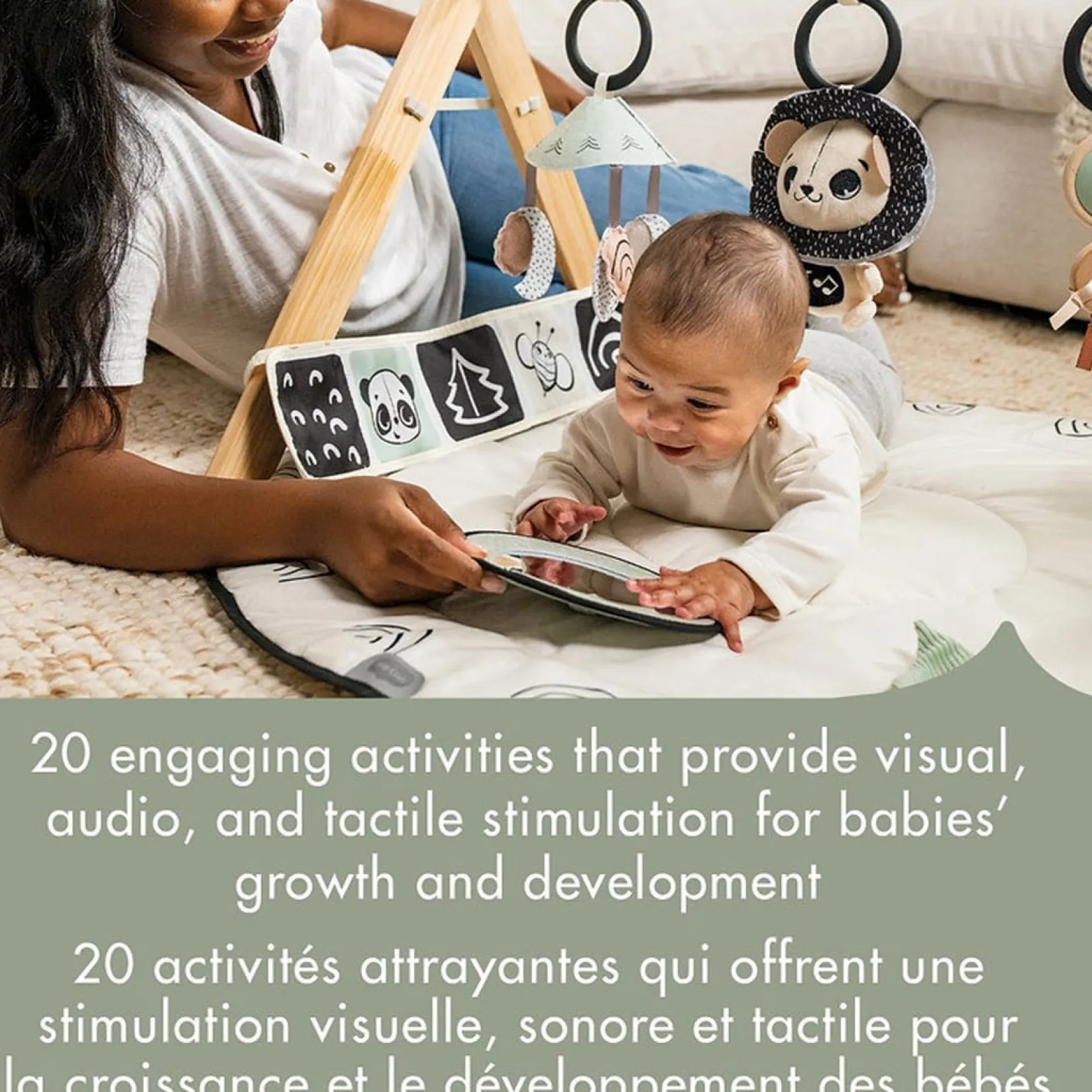 Support baby’s cognitive and physical development with the Black & White Decor Luxe Developmental Gymini from Tiny Love. Â Designed by child development experts, the Gymini features 20 engaging activities that provide visual, audio, and tactile stimulation to support your baby’s growth and development. Â