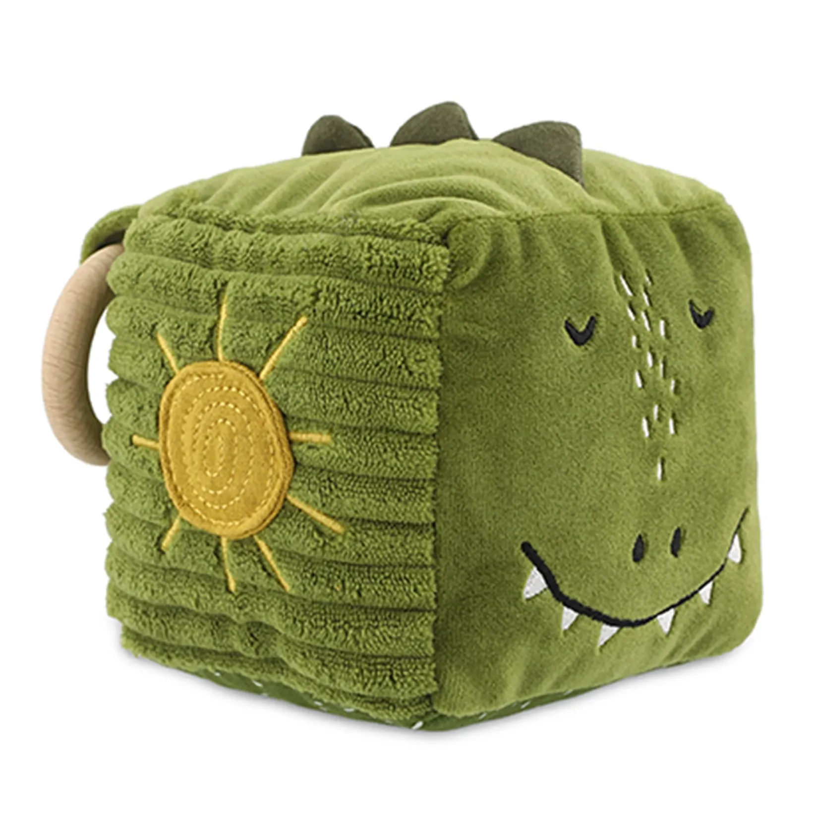 Soft, squishy and full of fascinating features, this friendly-faced activity cube offers hours of discovery. It comes with different textures, paws and a tail, a mirror, crinkly insides and both a wooden and a silicone ring – perfect for chewing and carrying.