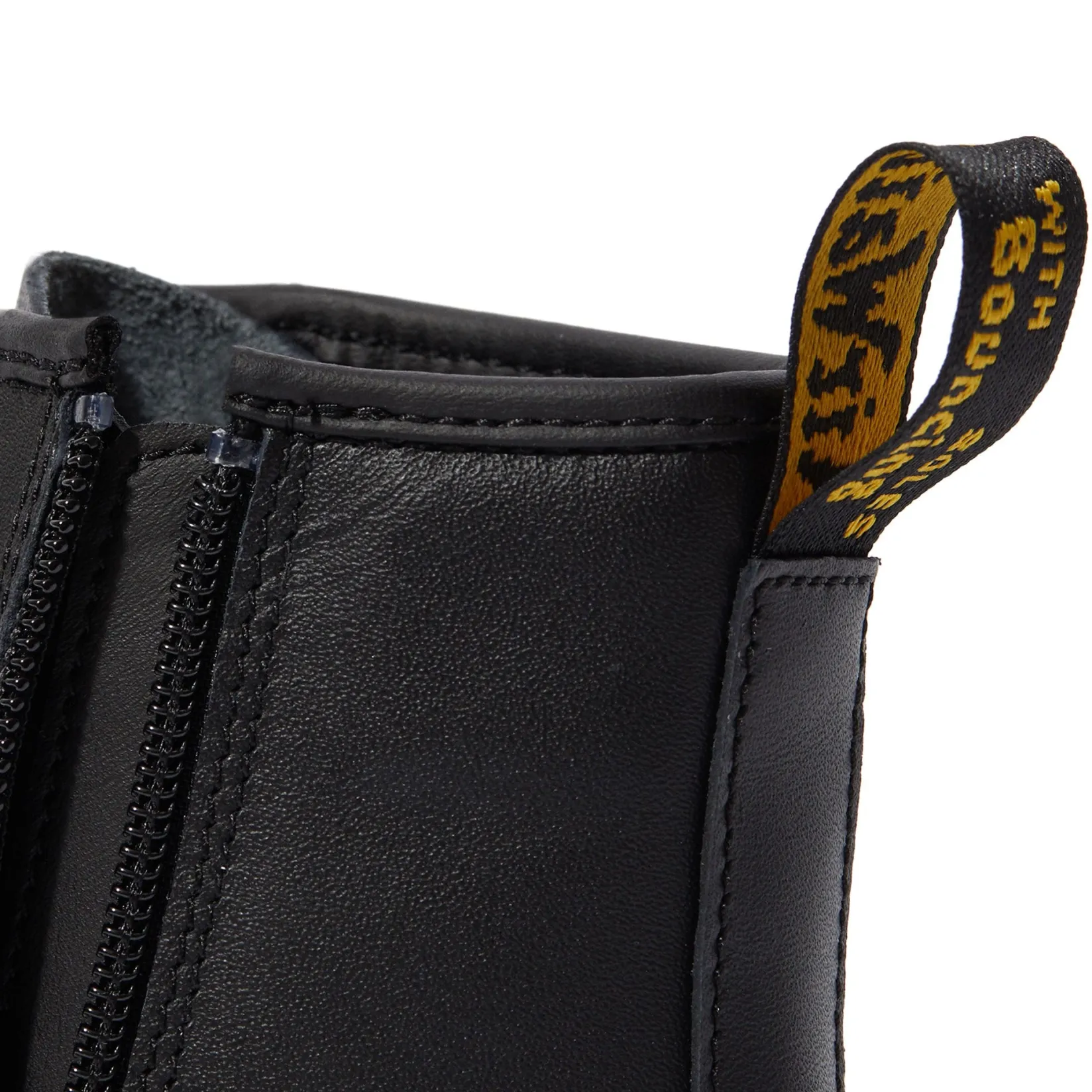 Dr Martens innovates with its 100% vegan leather. It is made of a synthetic material with a glossy finish. The classic fit of the 1460 incorporates iconic Doc features like a chunky cushioned sole, contrasting yellow stitching and a logo heel buckle. Traditional model, modern way of thinking.