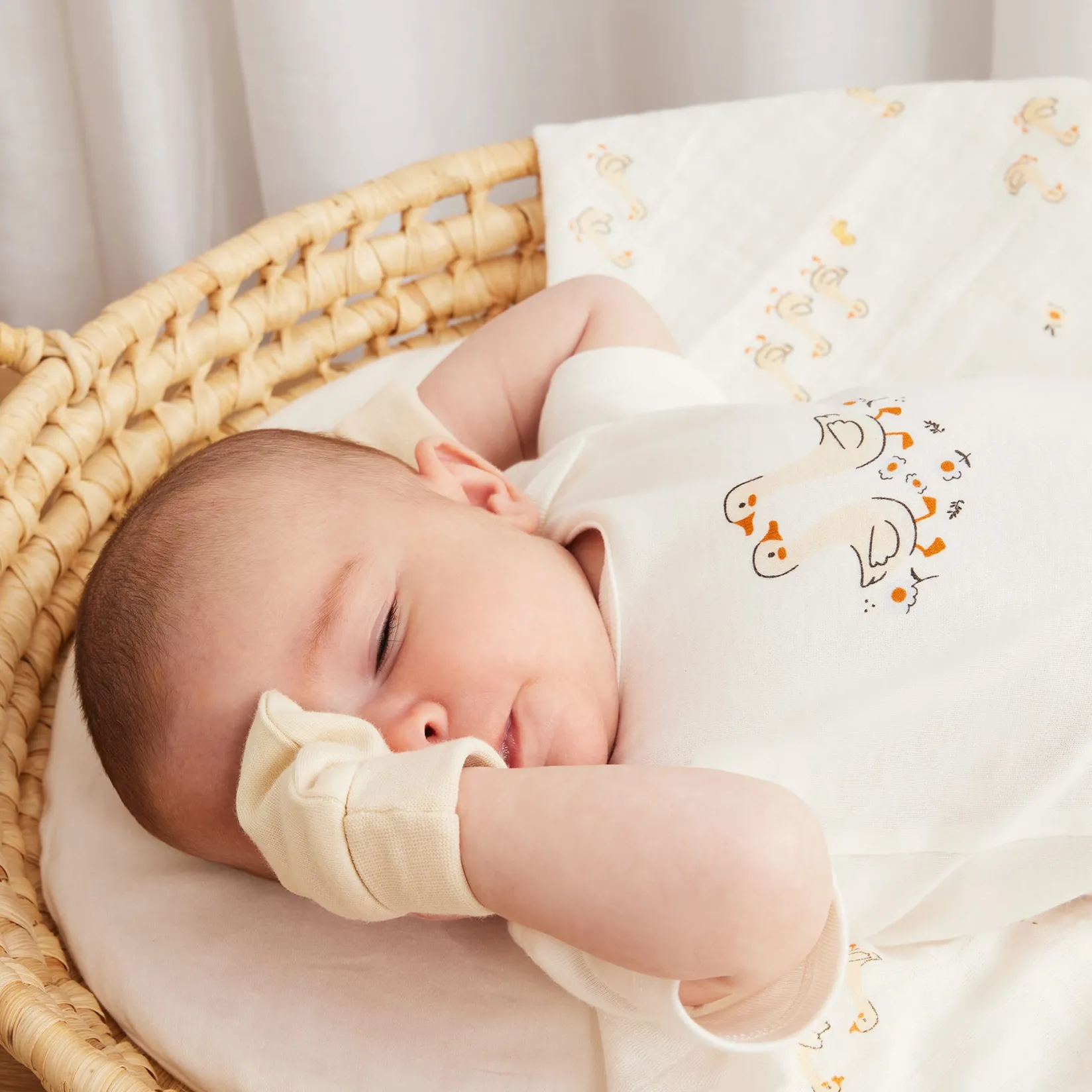 Our new mittens have been improved and feature ribbed cuffs to keep them secure on wiggly little hands. With two pairs in different colors, you will always have the possibility to coordinate them perfectly with sleepwear and accessories from the same layette collection. Made from organic interlock cotton, the mittens are gentle on hands while protecting the rest of baby’s delicate skin.
