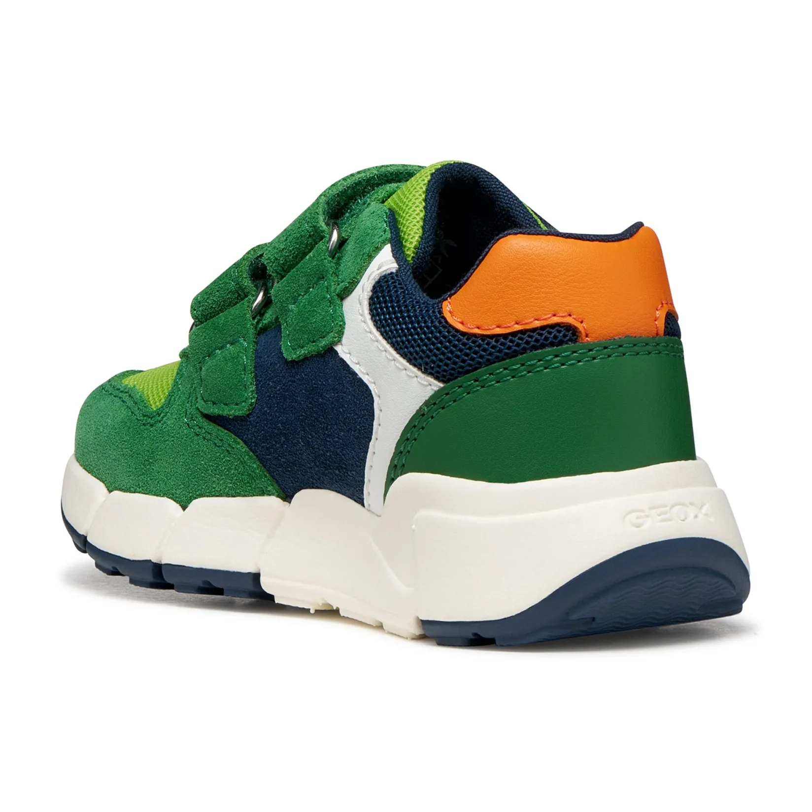 Flexible lightweight sneaker for boys designed to bring complete comfort to toddlers’ days. This version of Flexyper Mini has been crafted from suede and a leather-effect material in a royal-blue and red colourway, and delivers softness and durability at the same time. Flexyper Mini offers the right amount of support and ease of movement for children’s day-to-day adventures.