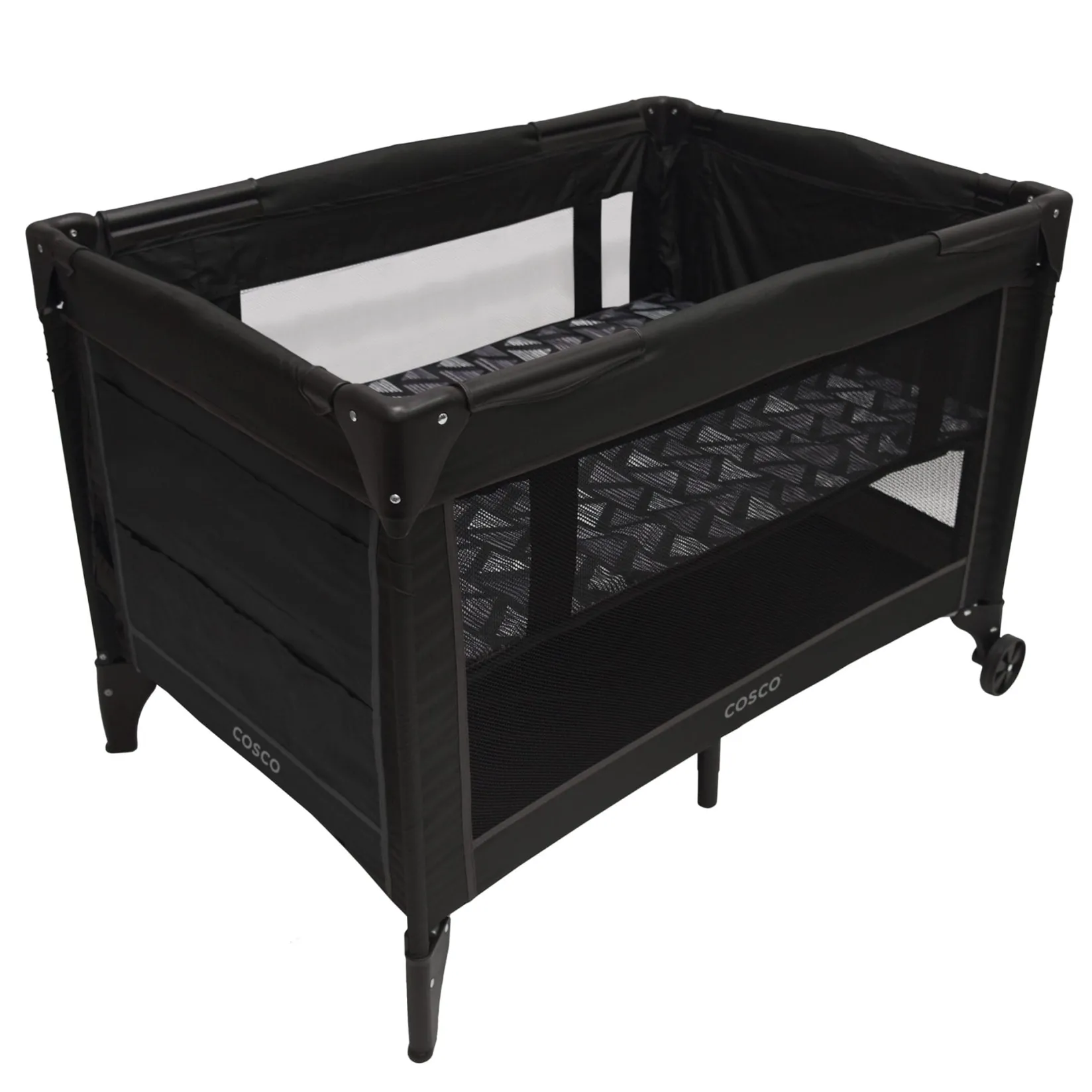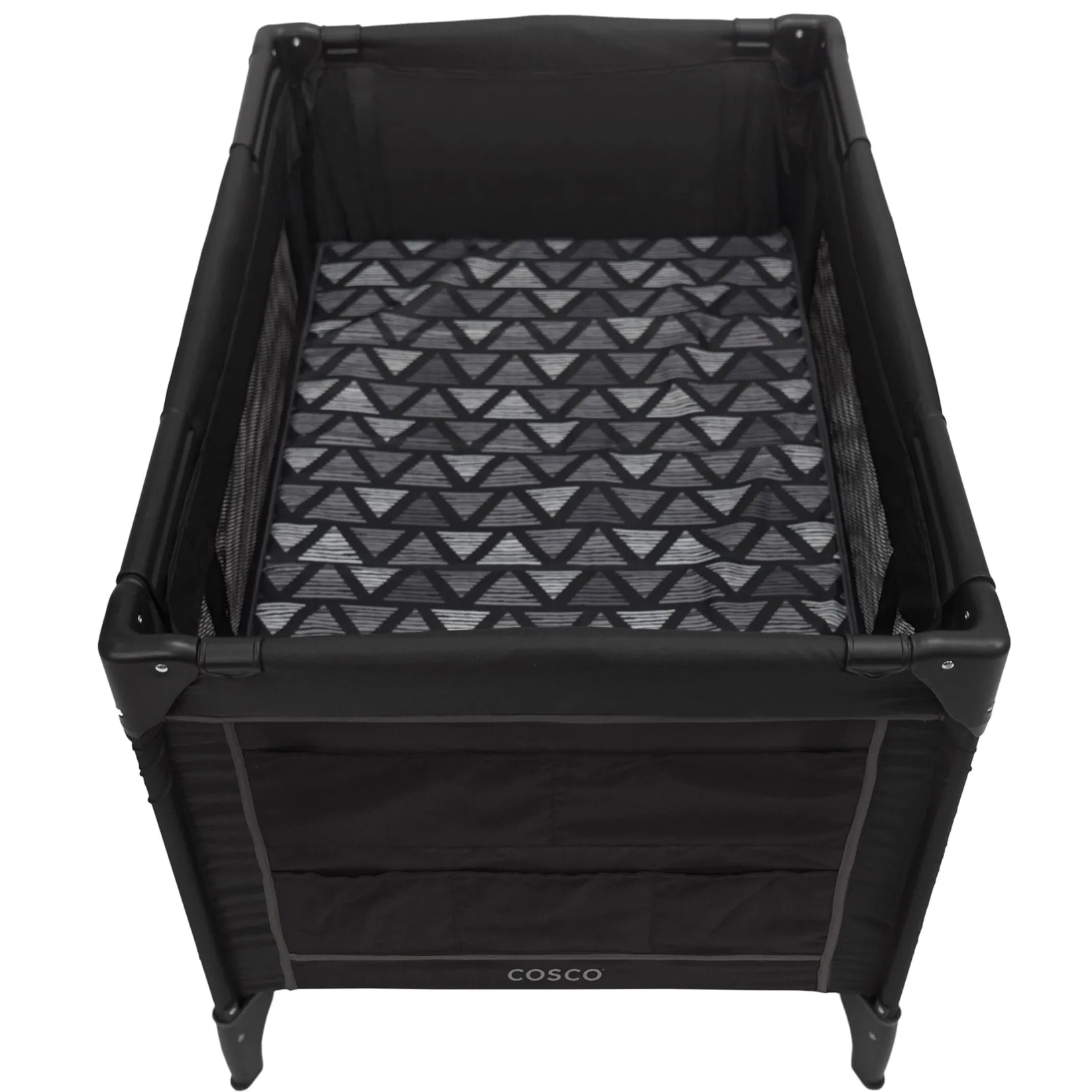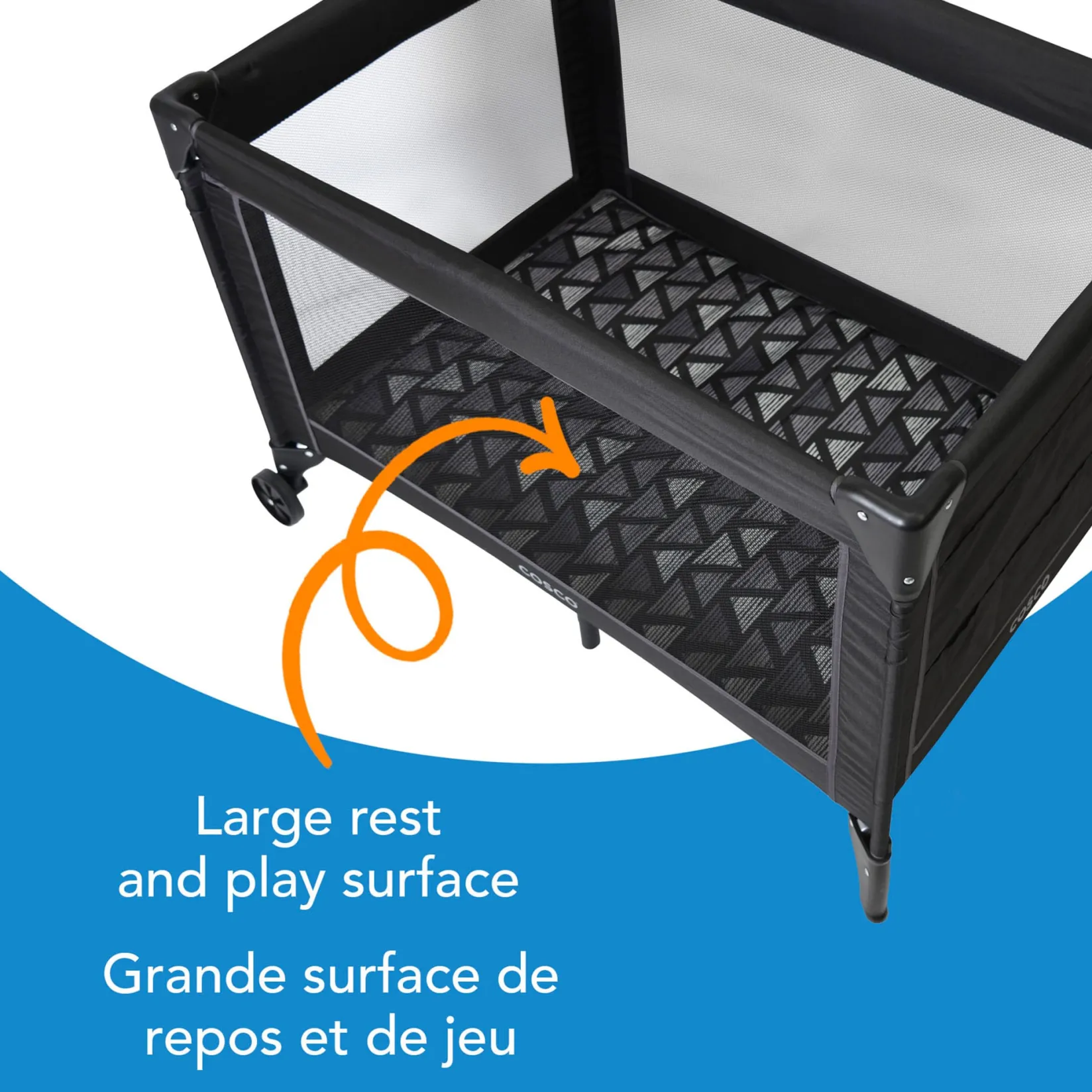 Fun at home or on the run, the Cosco Funsport® Plus Playard features a no-nonsense design that sets up in seconds. It has plenty of space for baby to nap or play, because sometimes mom and dad need both hands free. The compact fold and carry bag make it easy to toss in the trunk and take along for the ride. This Plus version of the popular Funsport Playard features a handy storage area that makes it easy to keep favorite soft toys or a blankie nearby and out from underfoot.