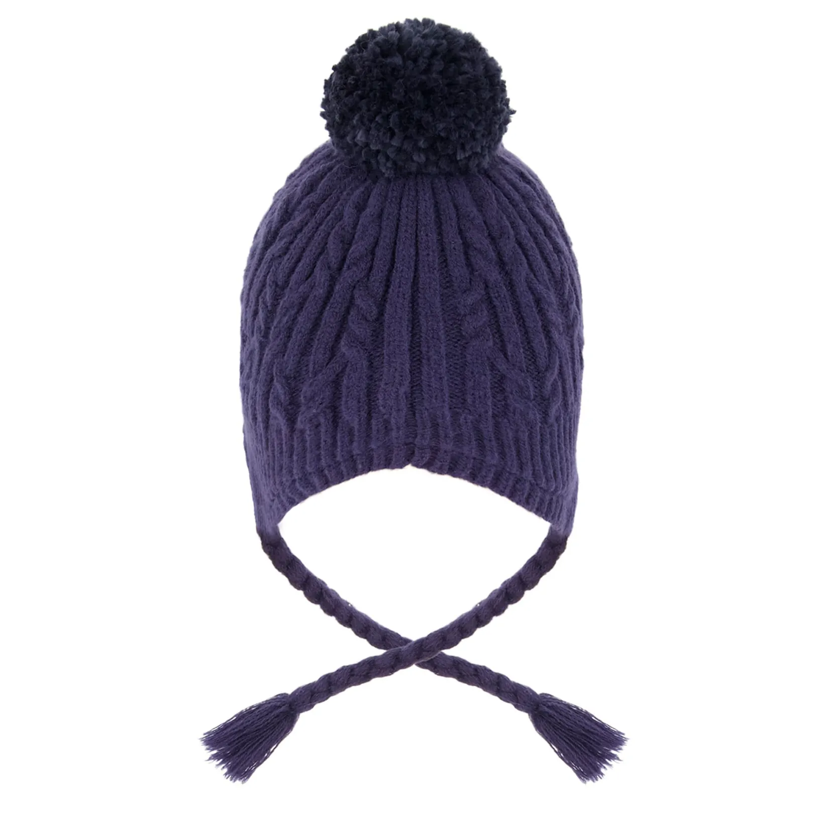 Lined with polar fleece for added warmth, this knit cap in off-white is winter weather-approved. In a Peruvian silhouette with extended side panels that cover and protect the ears, this winter hat features a chunky cable knit texture, braided side tassels, a fluffy pompom, and a logo patch for brand distinction.