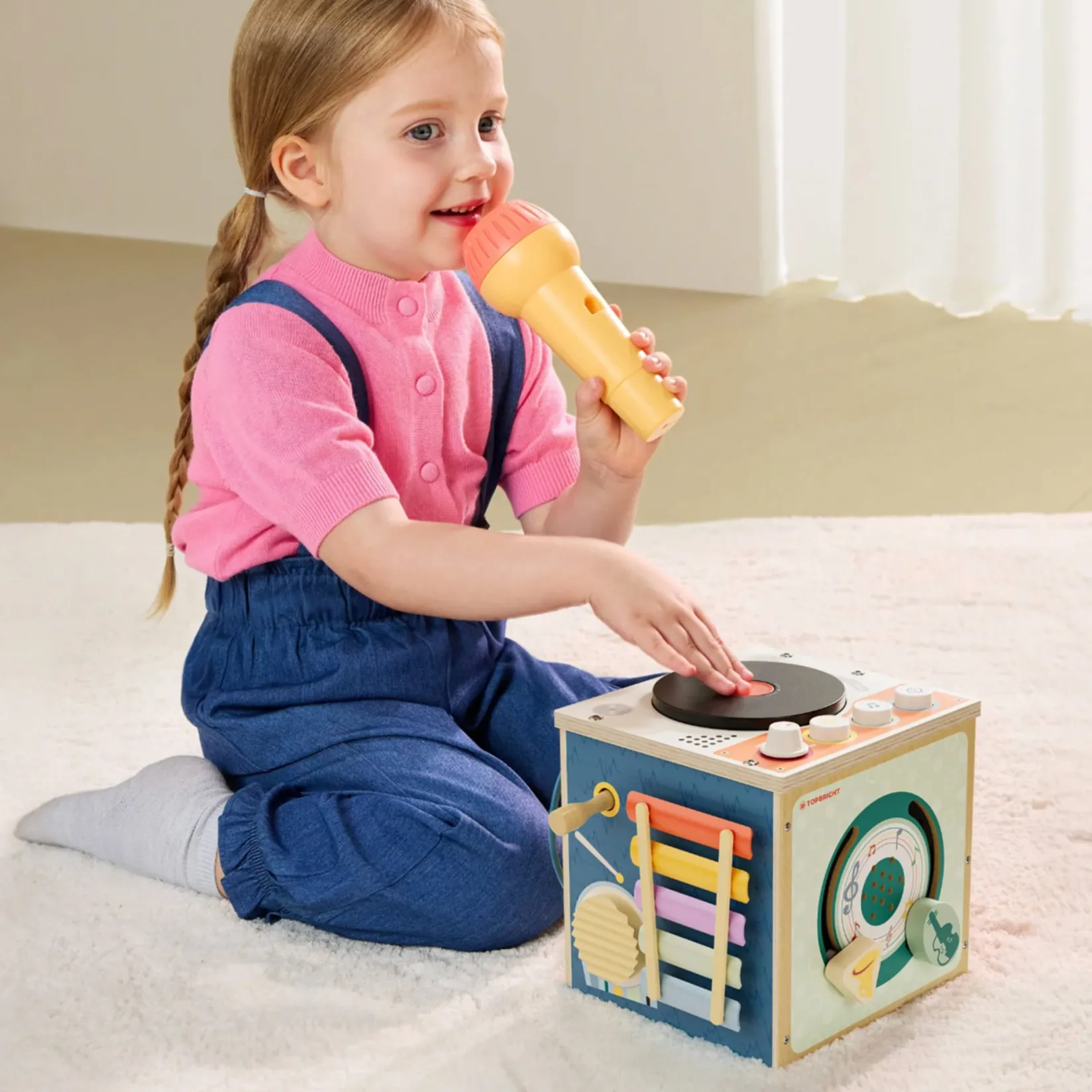 -Includes a DJ table with spinning turntable, a colorful xylophone, and a role-play microphone for musical fun