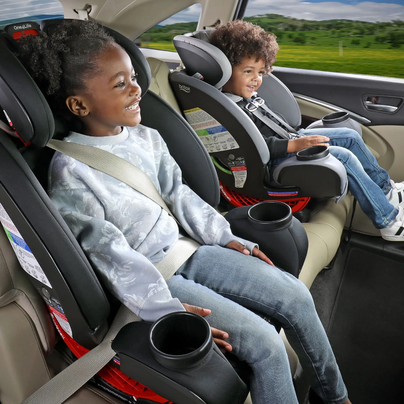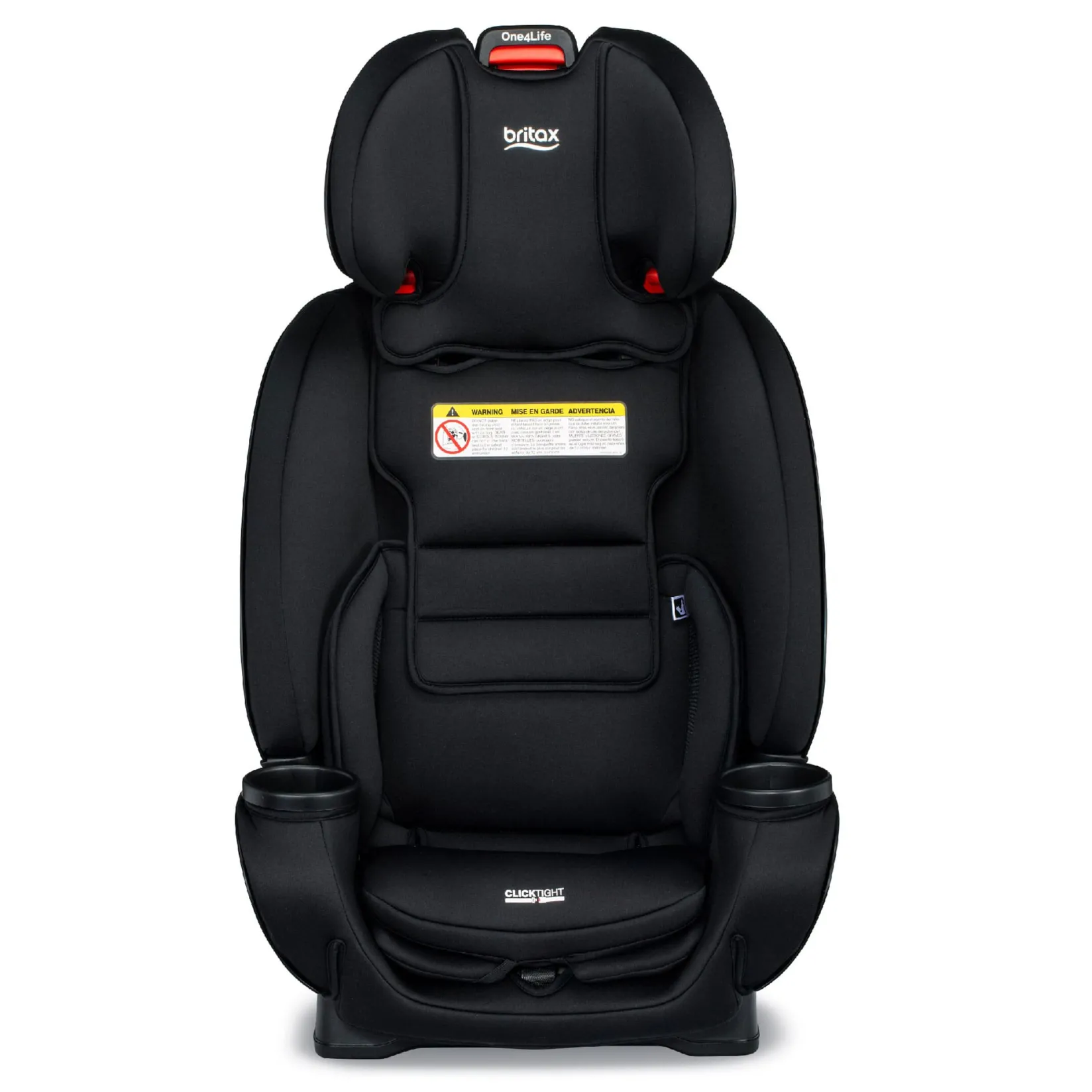 One4Life takes your child from birth to big kid, surrounding them with trusted Britax safety. It easily converts from a rear-facing infant car seat, to a forward-facing 5-point harness seat, to a high-back belt-positioning booster seat. A high-strength steel frame, crumple zone, and V-shaped tether help absorb crash energy. Features ClickTight® technology for struggle-free installation and a SafeWash® cover with no added flame-retardant chemicals.