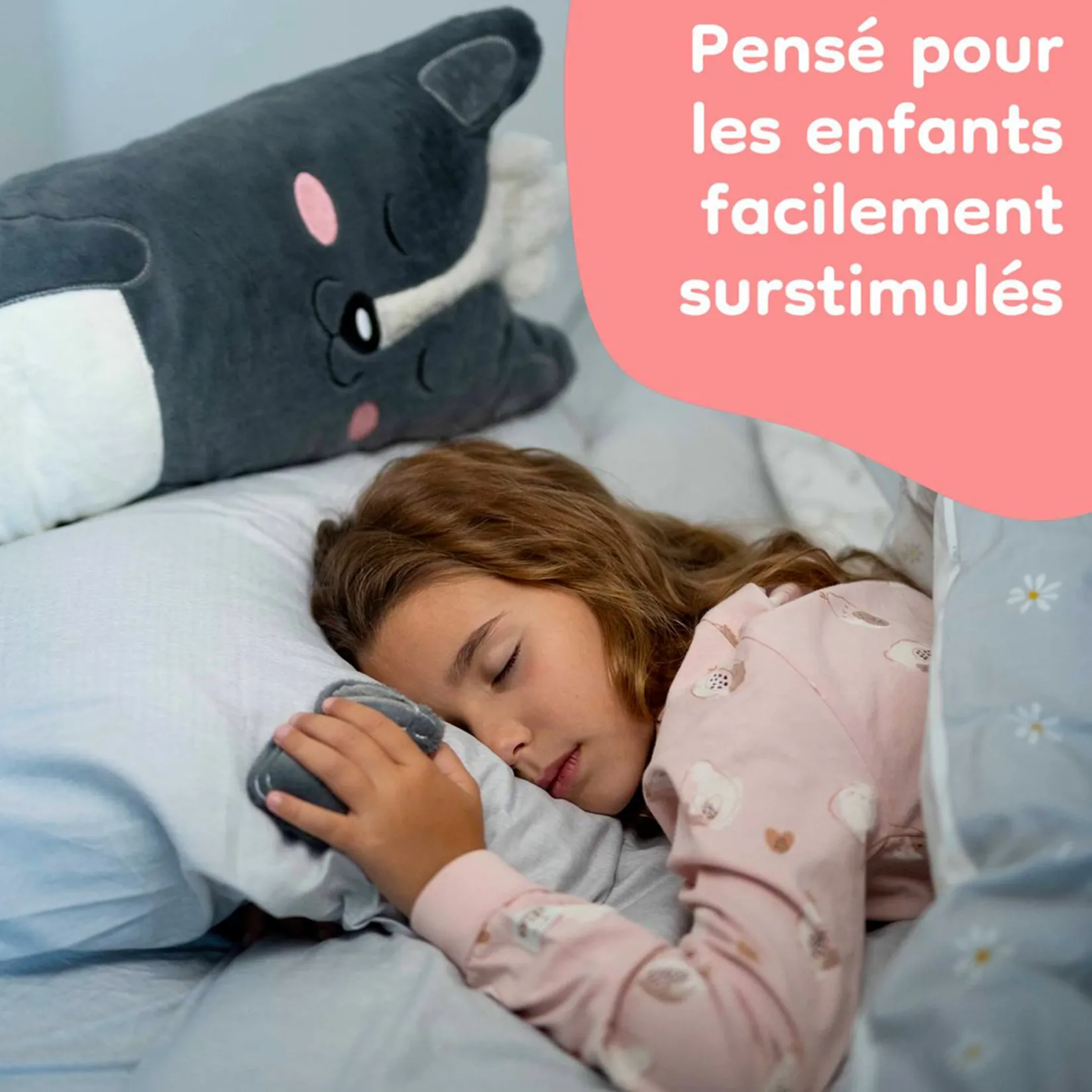 Attachable body plush toy with a comforting fidget to hold and a story booklet to learn tips to help you relax during your sleep routine.