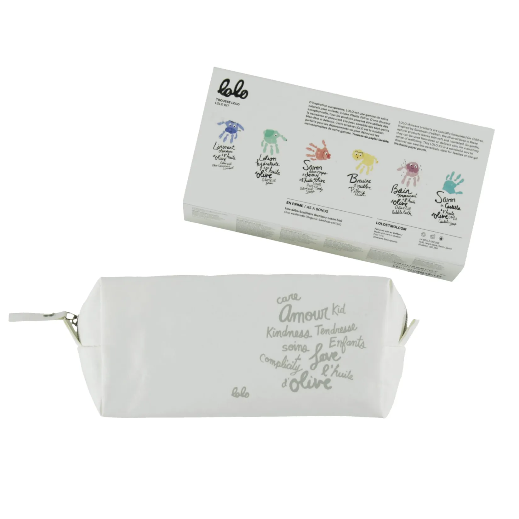 This Lolo Travel Kit Is a wonderful way to discover our care line essentials made in Quebec with natural ingredients like the extra virgin La Belle Excuse olive oil. Ideal for families on the go! Inspired by European tradition where olive oil is used in the creation of luxurious skin care products. Specially-formulated for newborns…perfect for everyone in the family!