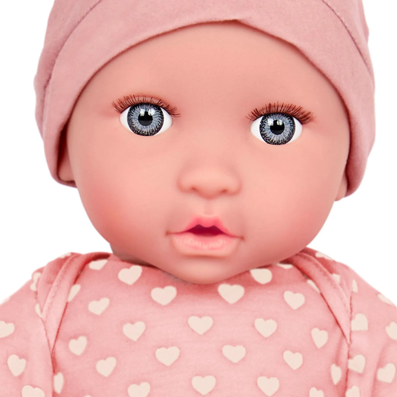 -Babi is nestled in polka dot jammies with a cute hat and one pacifier