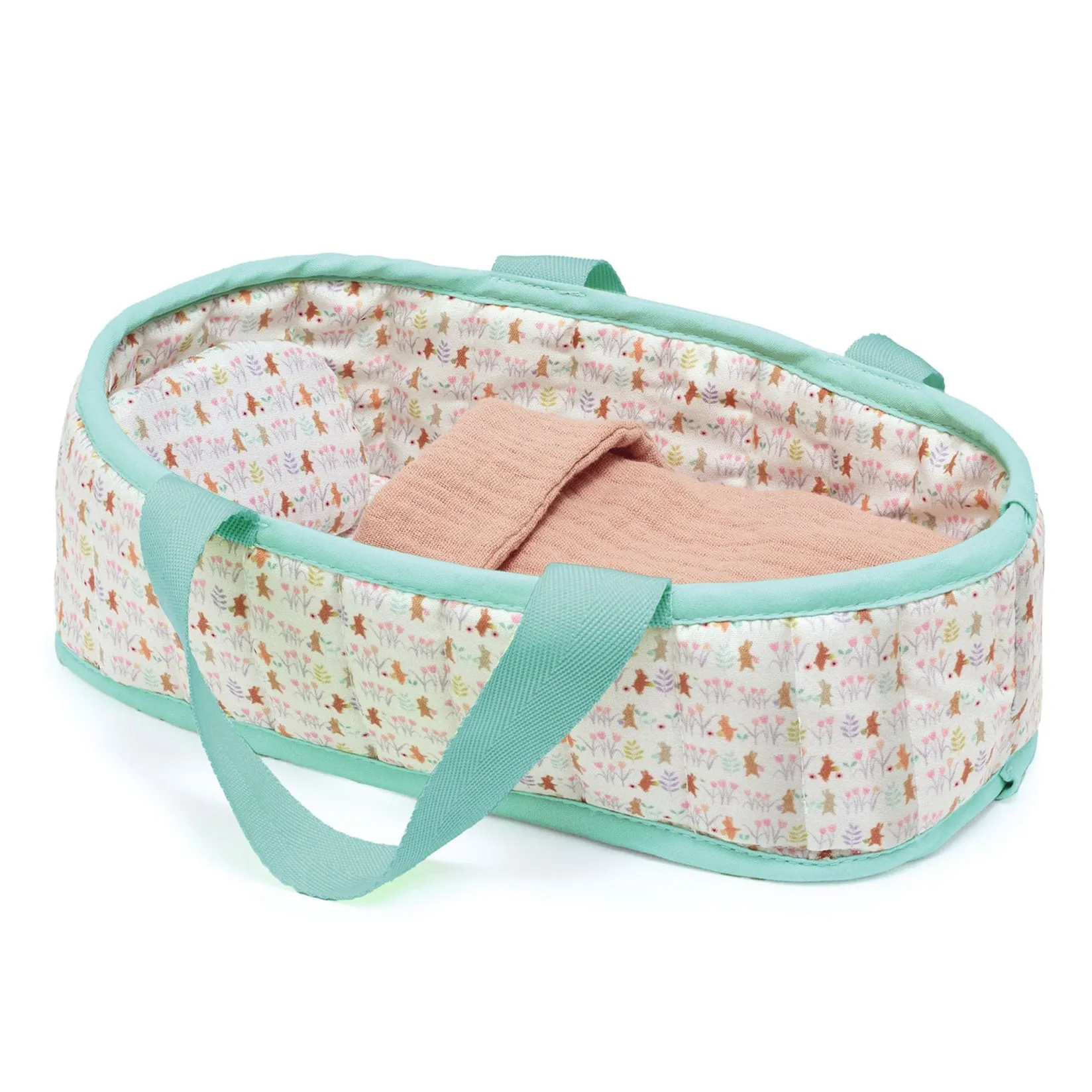 Sasha is a charming 20 cm doll with laughing eyes. Her soft and flexible body is printed with pyjamas. Nestled in an adorable quilted Moses basket with an elegant design, she will quickly become the ideal companion for little ones to cuddle and treasure wherever they decide to take her.