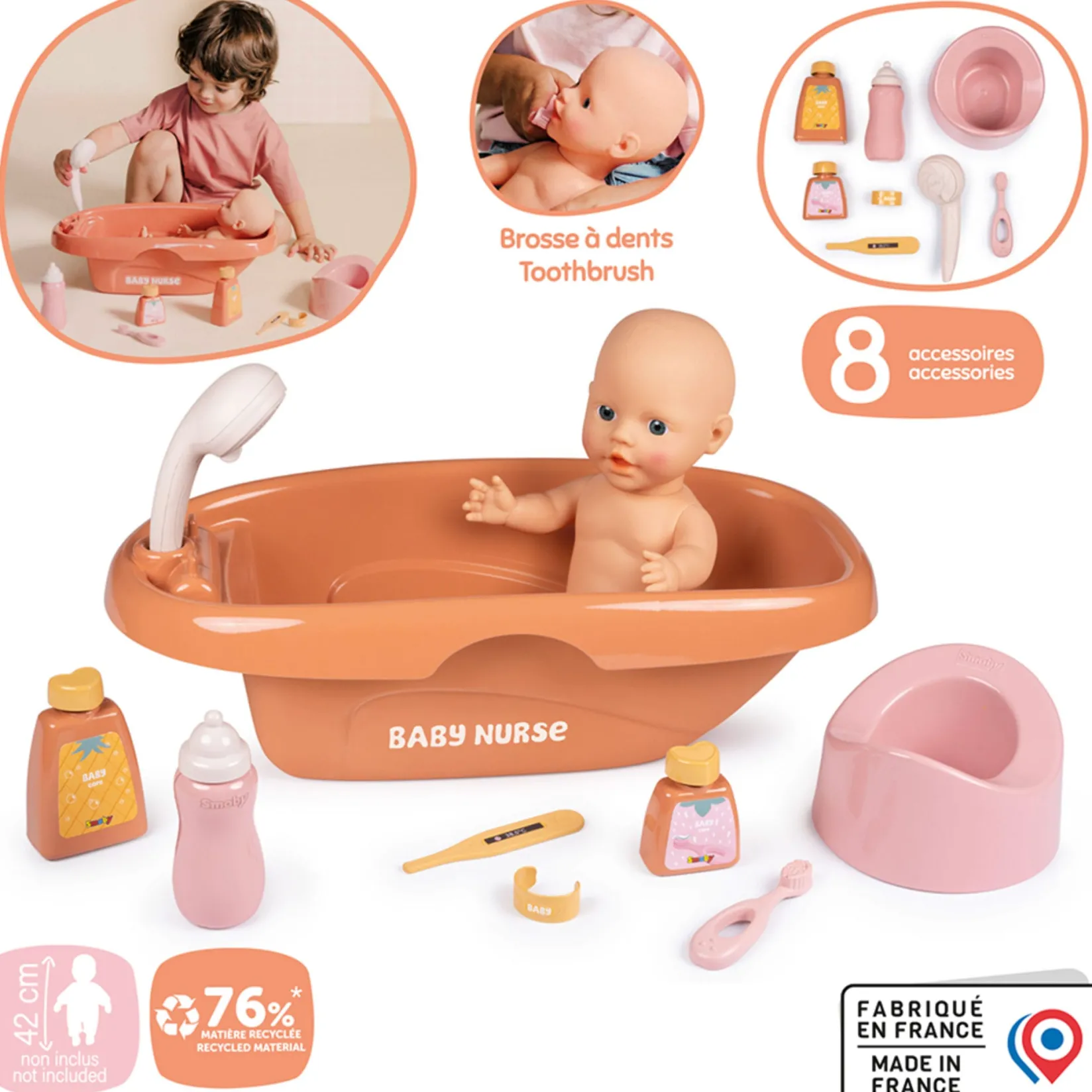 Suitable for dolls up to 42 cm. Doll not included.