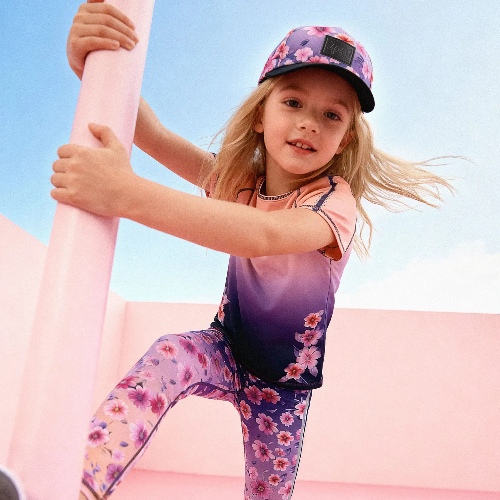 The multicolored cap brings sunny personality to little outfits. This hat features a flat brim for a modern look, an allover colorful gradient and a front “2par2” logo label that adds a signature touch. Crafted in 100% polyester, it’s lightweight and durable—perfect for park days, beach walks, and every bright adventure in our “The Accessories” collection.