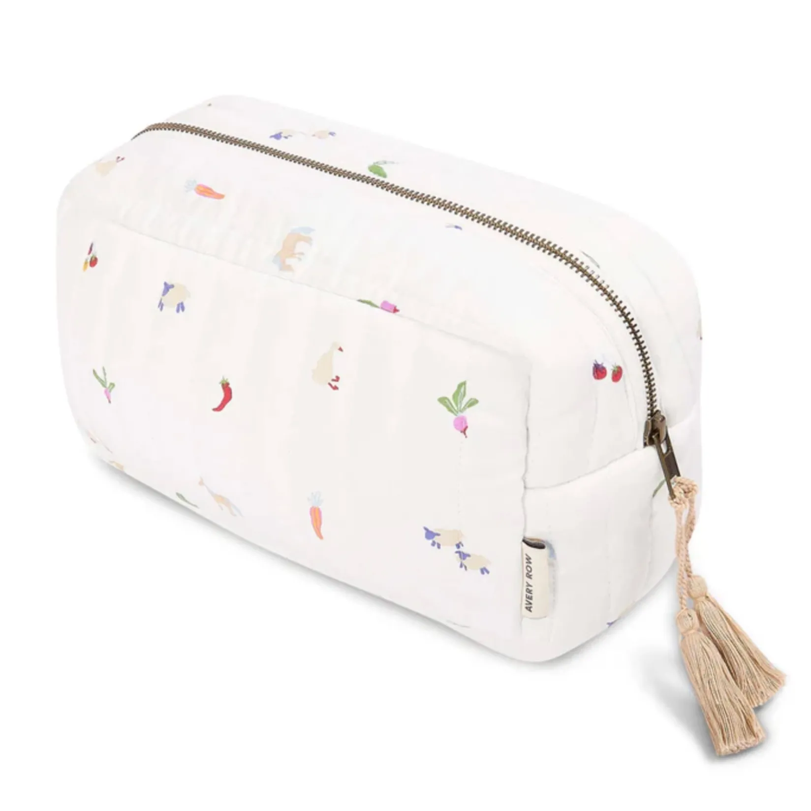 The organic quilted wash bag comes in the unique prints with a stylish tassel. A beautifully designed, practical pouch for parent or baby to store ythe toiletries, make up, and more or nappies and creams. It also has a handy elasticised pocket inside. The product that is for parent and baby and has an infinite number of uses.