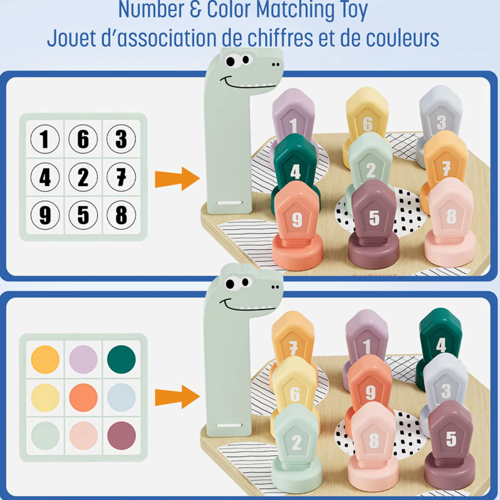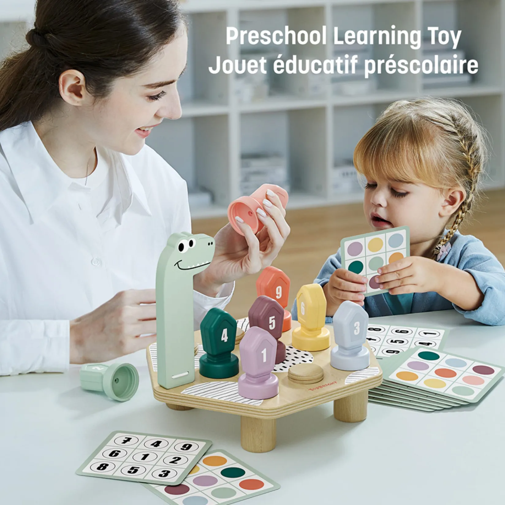 Designed to teach children about colors, the Happy Dino Twist includes 10 double-sided cards with various color patterns. Kids can match the colors on the bottle caps to the patterns on the cards, improving their color recognition and cognitive skills.Â