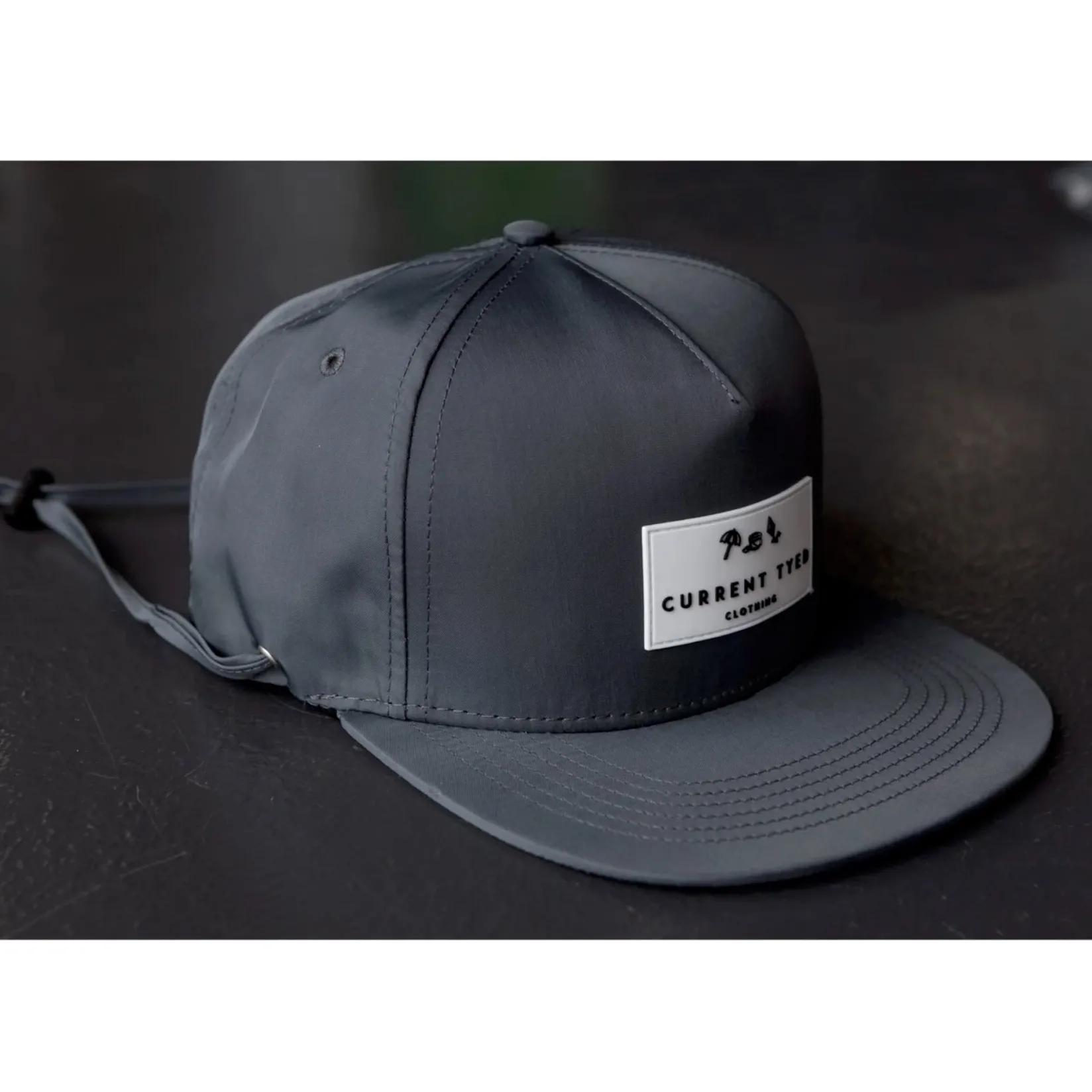 Made from 100% Waterproof Nylon, this custom cap combines a structured ball cap design with flat brim and snapback closure.