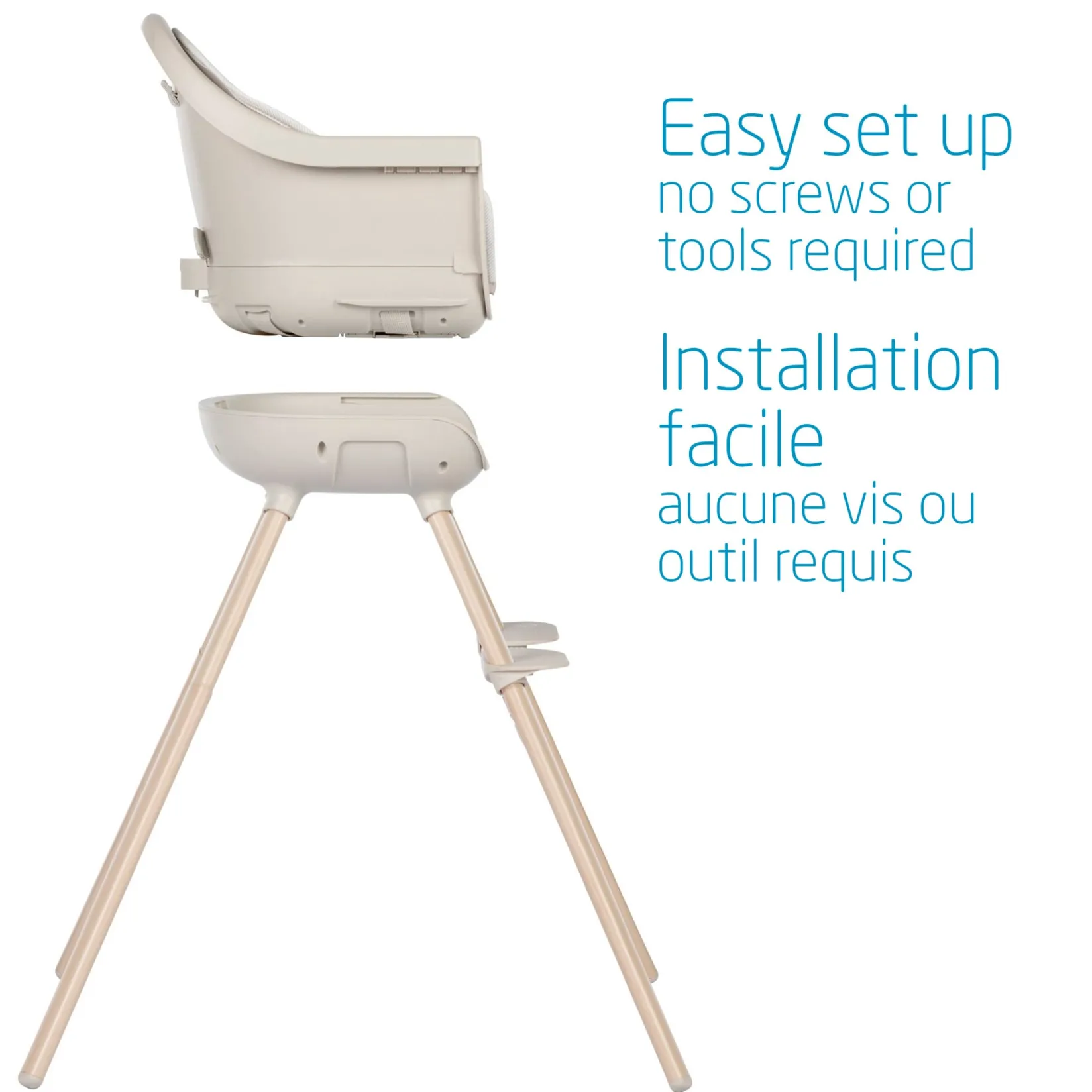 -Easy-to-follow assembly system makes it easy to install the high chair legs