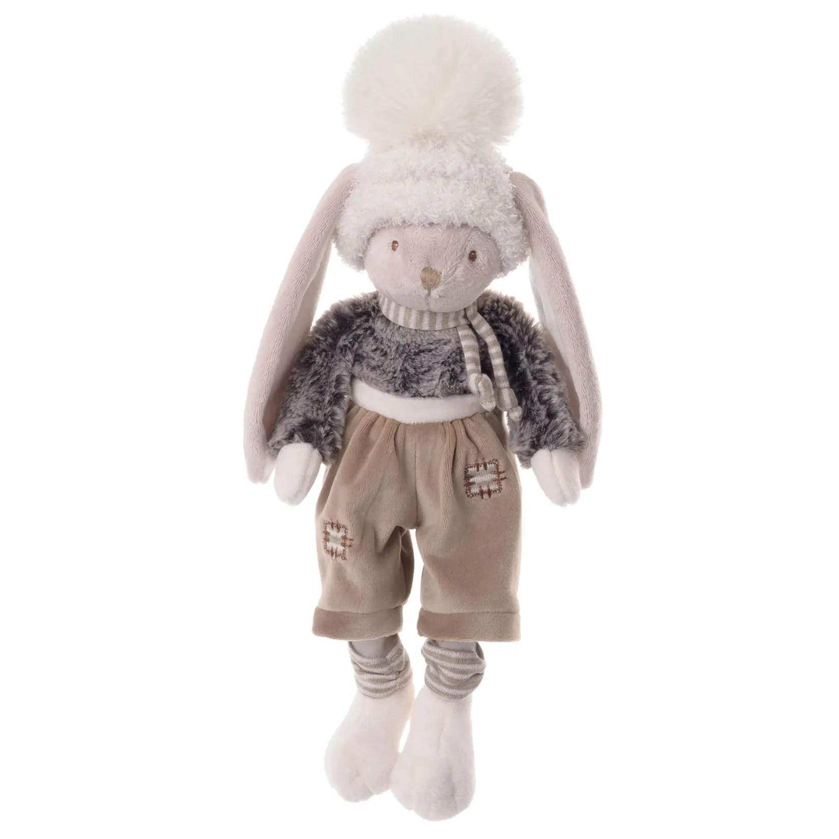 Dressed to impress, Deen is one of our must-have rabbits. His long pants, fuzzy sweater, and pom pom hat will not only keep him toasty during the winter months, but also his lucky companion. He loves to snuggle up near the fireplace and drink hot coco.Â