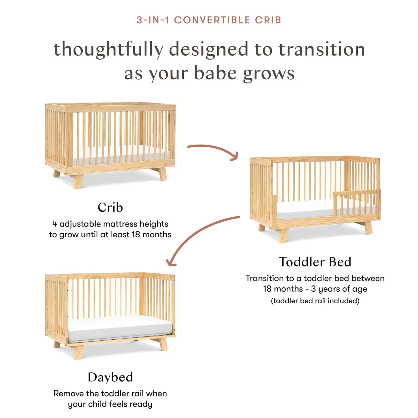 The best-selling Hudson 3-in-1 Convertible Crib is a favorite with babyletto parents because of its versatile modern design. Featuring stylish rounded spindles, a solid frame, and turned out feet. Made with solid New Zealand pine wood and screened for harmful chemicals to ensure it meets GREENGUARD GOLD Certification for your babe’s safety. An included toddler bed conversion kit allows you to seamlessly convert from crib to toddler bed to daybed as your babe grows.