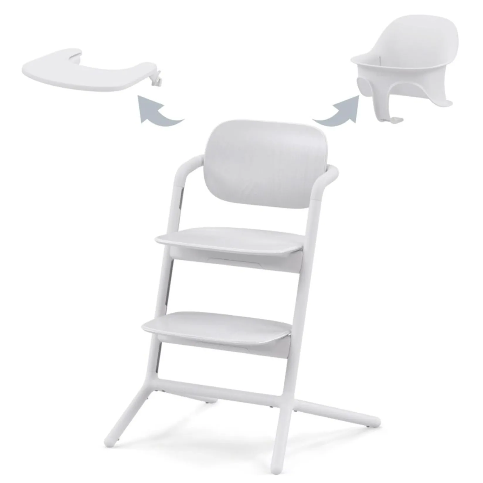 The CYBEX LEMO 3-in-1 High Chair offers a versatile choice that grows with your baby and fits seamlessly into your lifestyle. At 6 months, use the Baby Set and Snack Tray to make mealtime a breeze. As your child grows, remove the accessories to transform the LEMO into an everyday chair that can be used for many years to come.Â